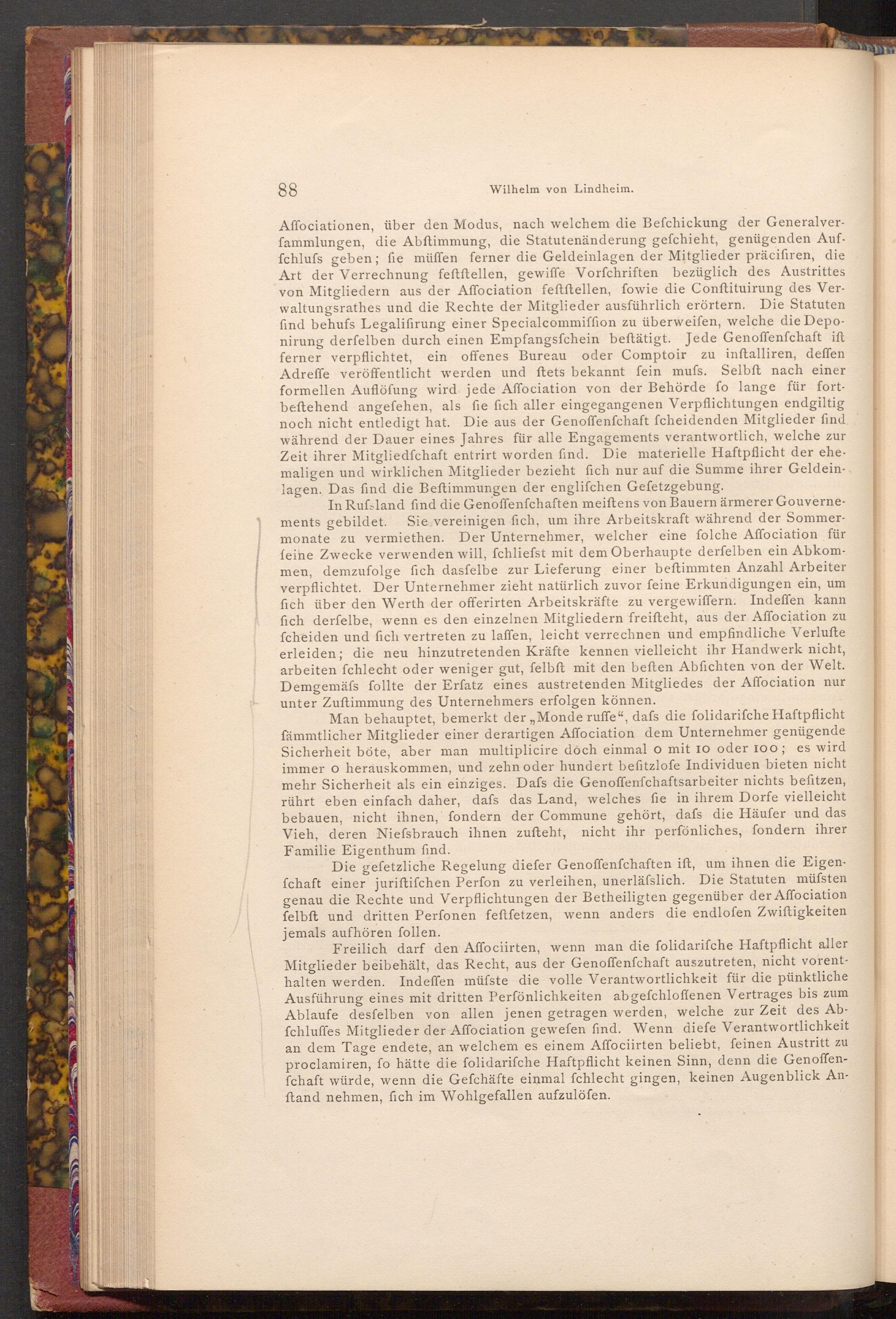 Freilich darf den Affociirten, wenn man die folidarifche Haftpflicht aller Mitglieder beibehält, das Recht, aus der Genoffenfchaft auszutreten, nicht vorenthalten werden. Indeffen müfste die volle Verantwortlichkeit für die pünktliche Ausführung eines mit dritten Perfönlichkeiten abgefchloffenen Vertrages bis zum Ablaufe desfelben von allen jenen getragen werden, welche zur Zeit des Abfchluffes Mitglieder der Affociation gewefen find. Wenn diefe Verantwortlichkeit an dem Tage endete, an welchem es einem Affociirten beliebt, feinen Austritt zu proclamiren, fo hätte die folidarifche Haftpflicht keinen Sinn, denn die Genoffenfchaft würde, wenn die Gefchäfte einmal fchlecht gingen, keinen Augenblick Anftand nehmen, fich im Wohlgefallen aufzulöfen.