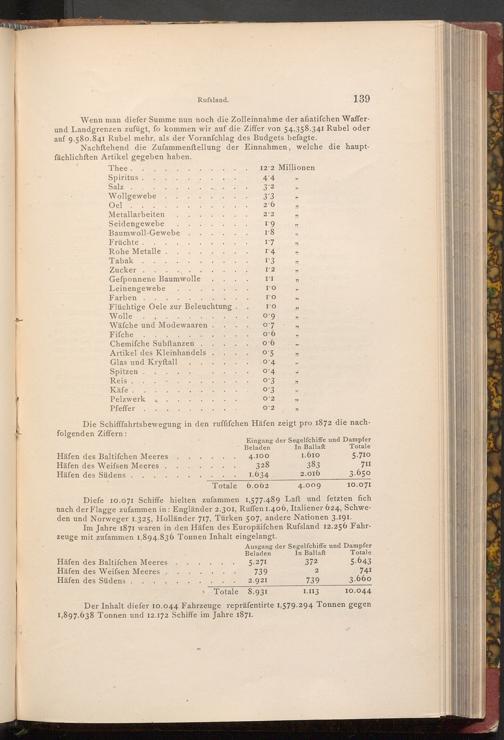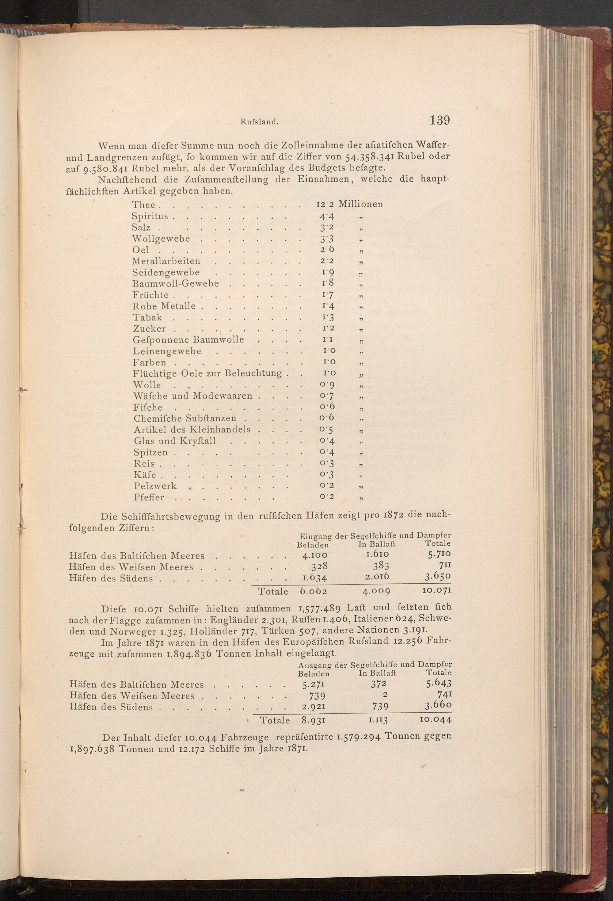 Der Inhalt diefer 10.044 Fahrzeuge repräfentirte 1,579.294 Tonnen gegen 1,897.638 Tonnen und 12.172 Schiffe im Jahre 1871.
