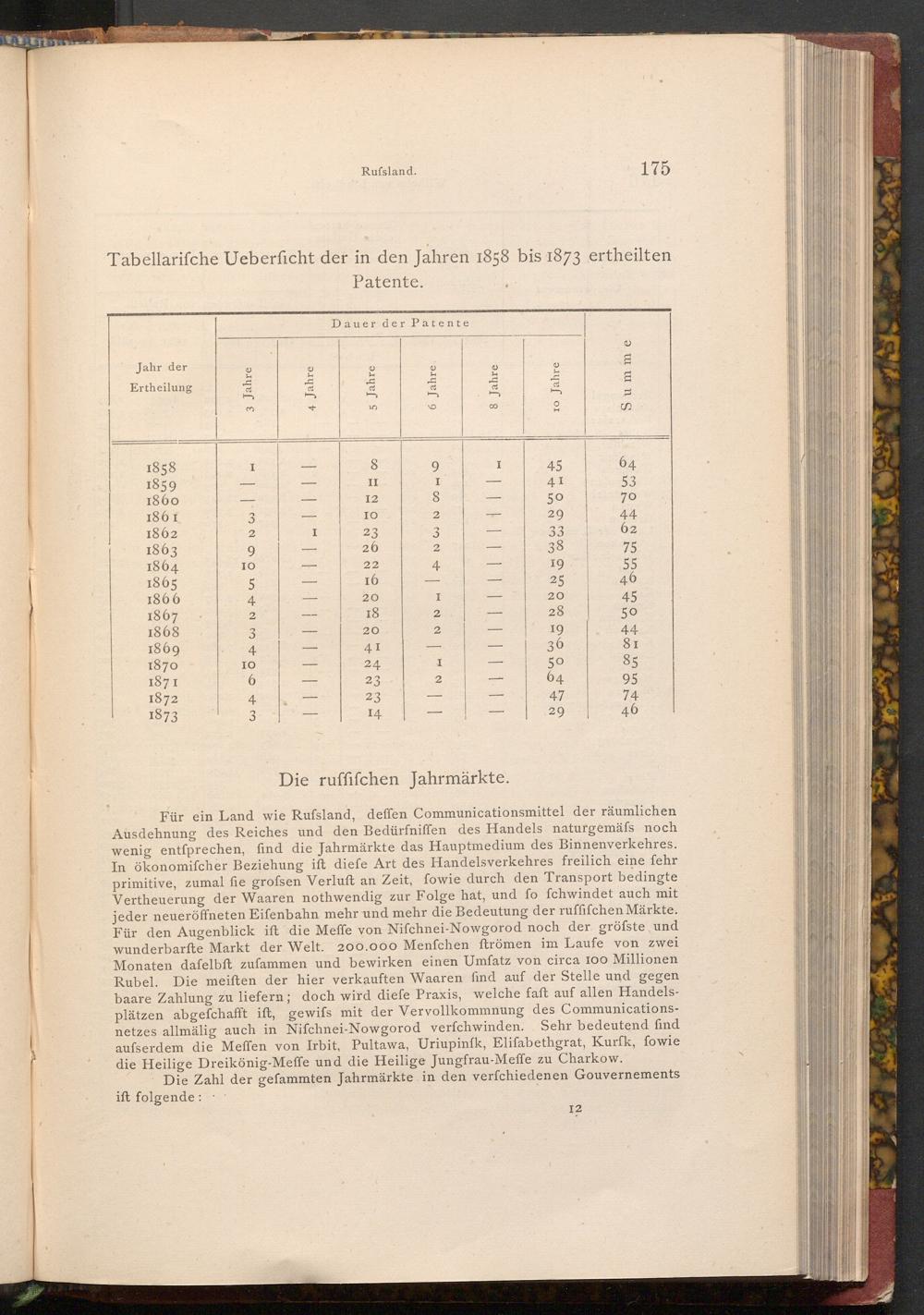 Tabellarifche Ueberficht der in den Jahren 1858 bis 1873 ertheilten Patente.