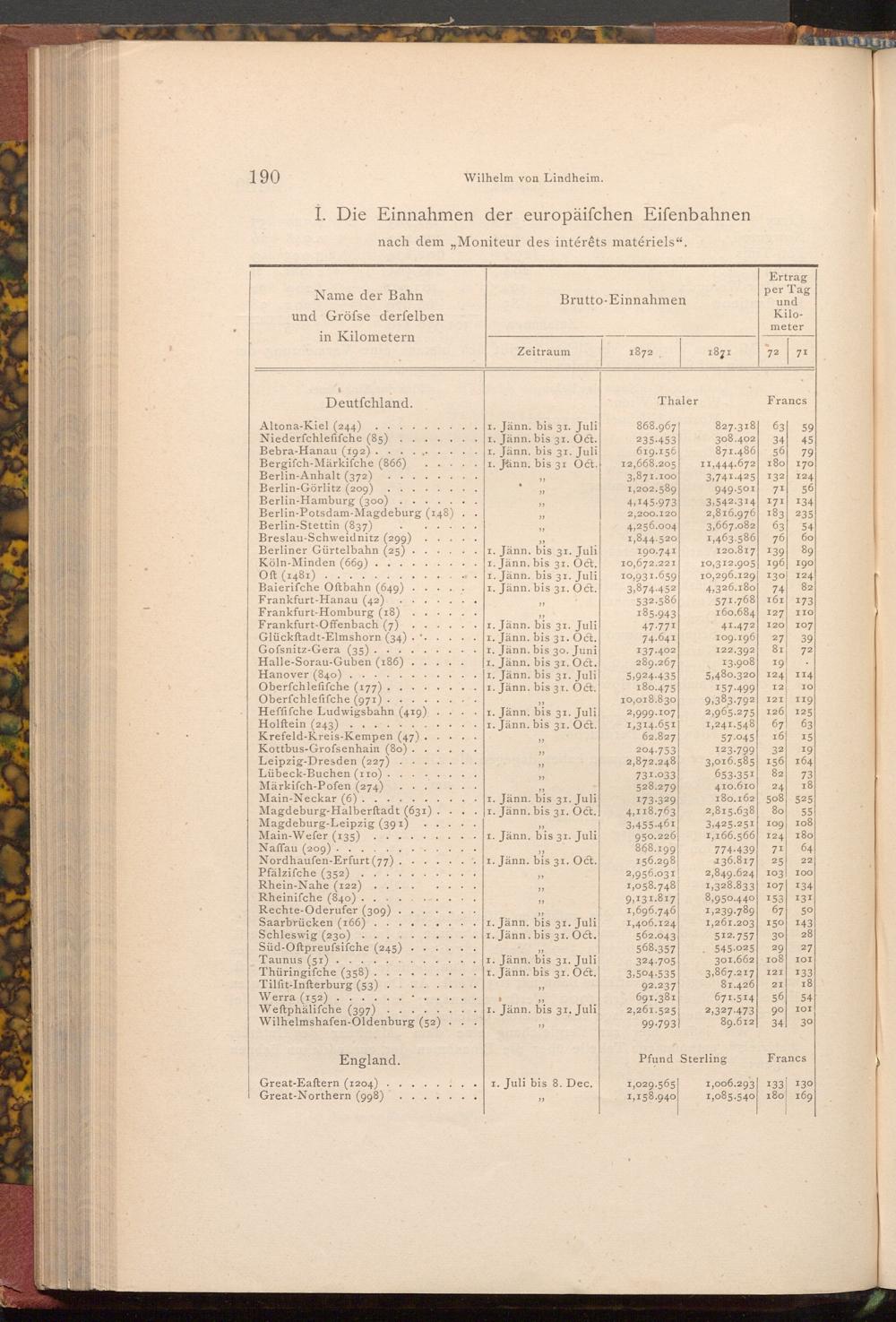 I. Die Einnahmen der europäiſchen Eiſenbahnen