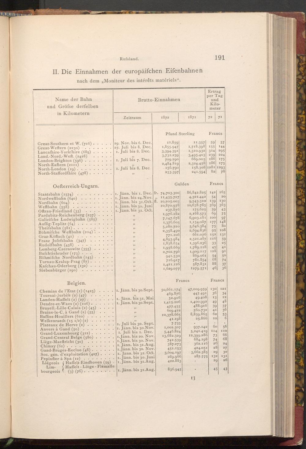 II. Die Einnahmen der europäiſchen Eifenbahnen