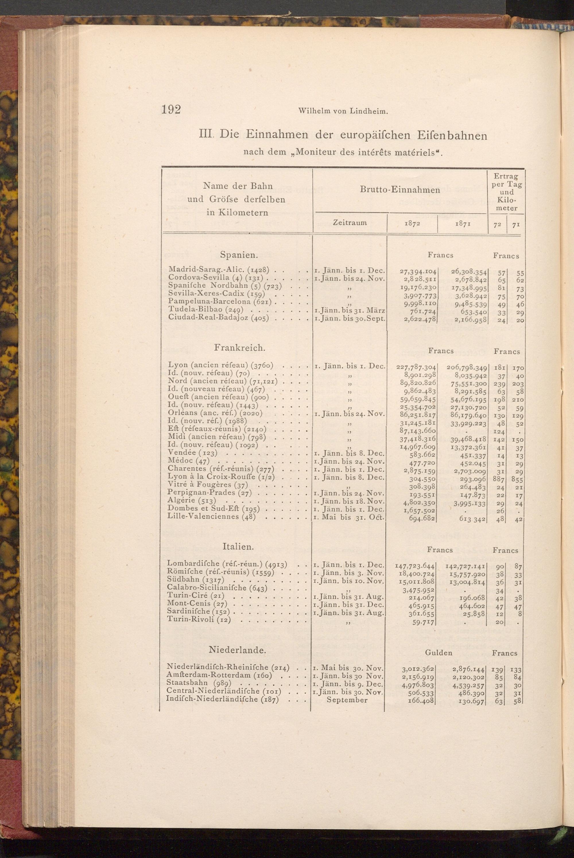 III. Die Einnahmen der europäiſchen Eiſenbahnen nach dem„ Moniteur des intérêts matériels".