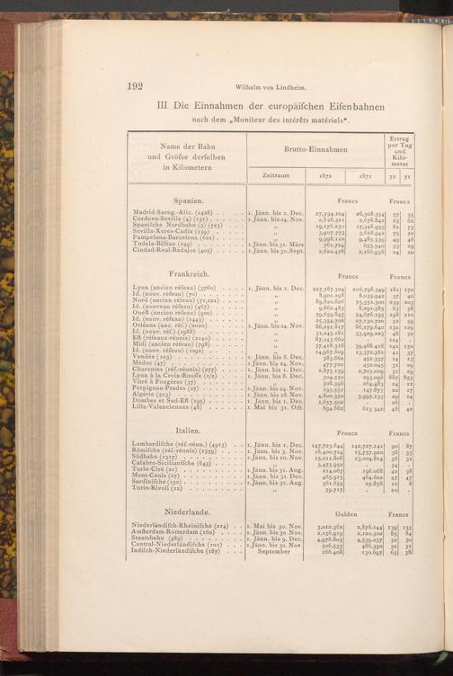 Madrid- Sarag.- Alic.( 1428). Cordova- Sevilla( 4)( 131) Spaniſche Nordbahn( 5)( 723) Sevilla- Xeres- Cadix( 159) Pampeluna- Barcelona( 621). Tudela- Bilbao( 249) Ciudad- Real- Badajoz( 405)
