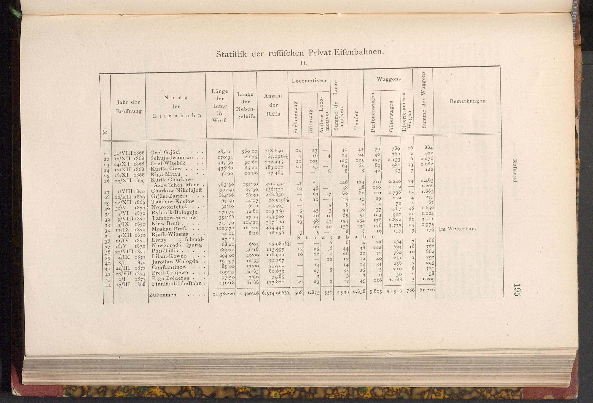 Statiſtik der ruffifchen Privat- Eifenbahnen.