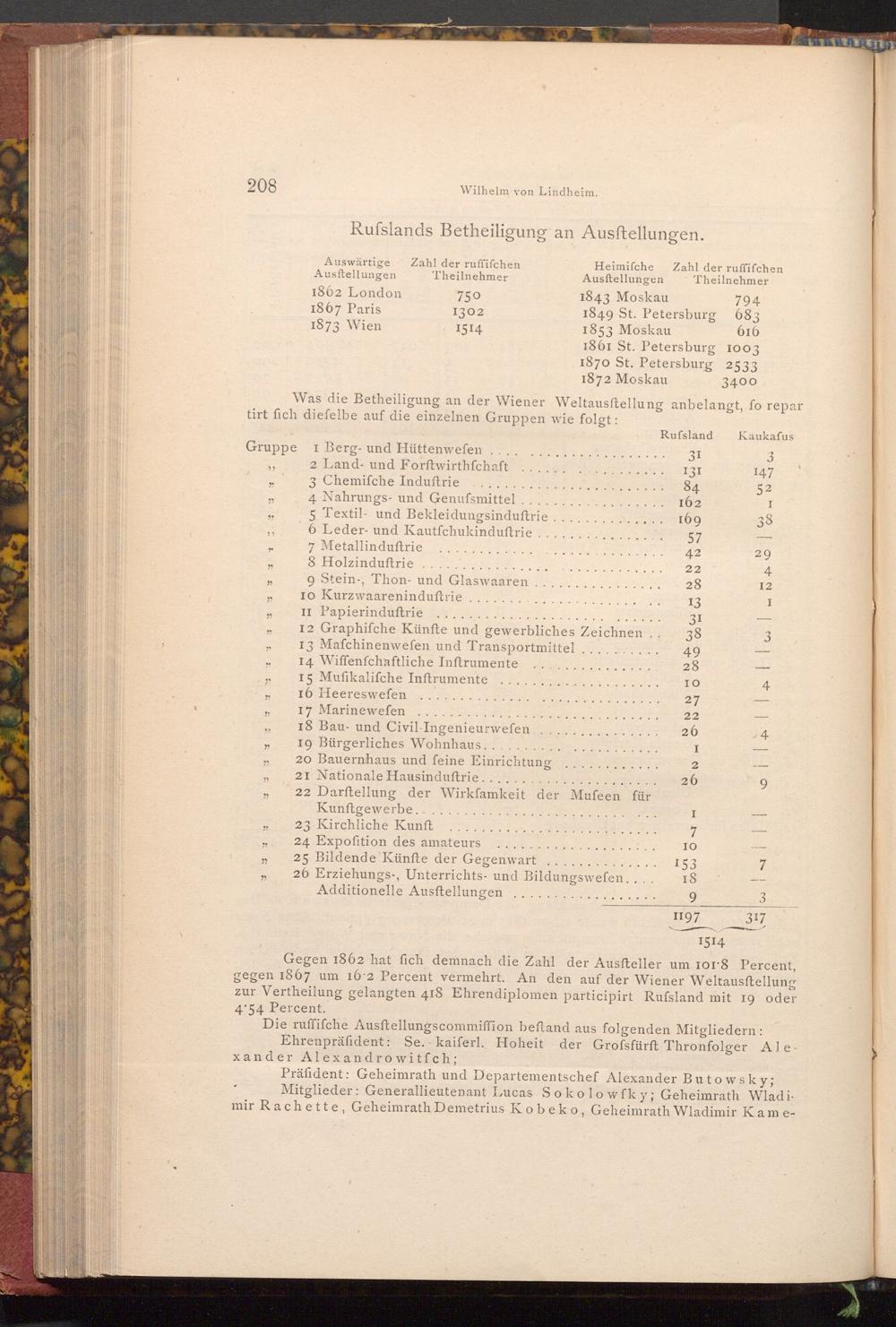 Die ruffifche Ausftellungscommiffion beftand aus folgenden Mitgliedern: Ehrenpräfident: Se. kaiferl. Hoheit der Grofsfürft Thronfolger Ale
