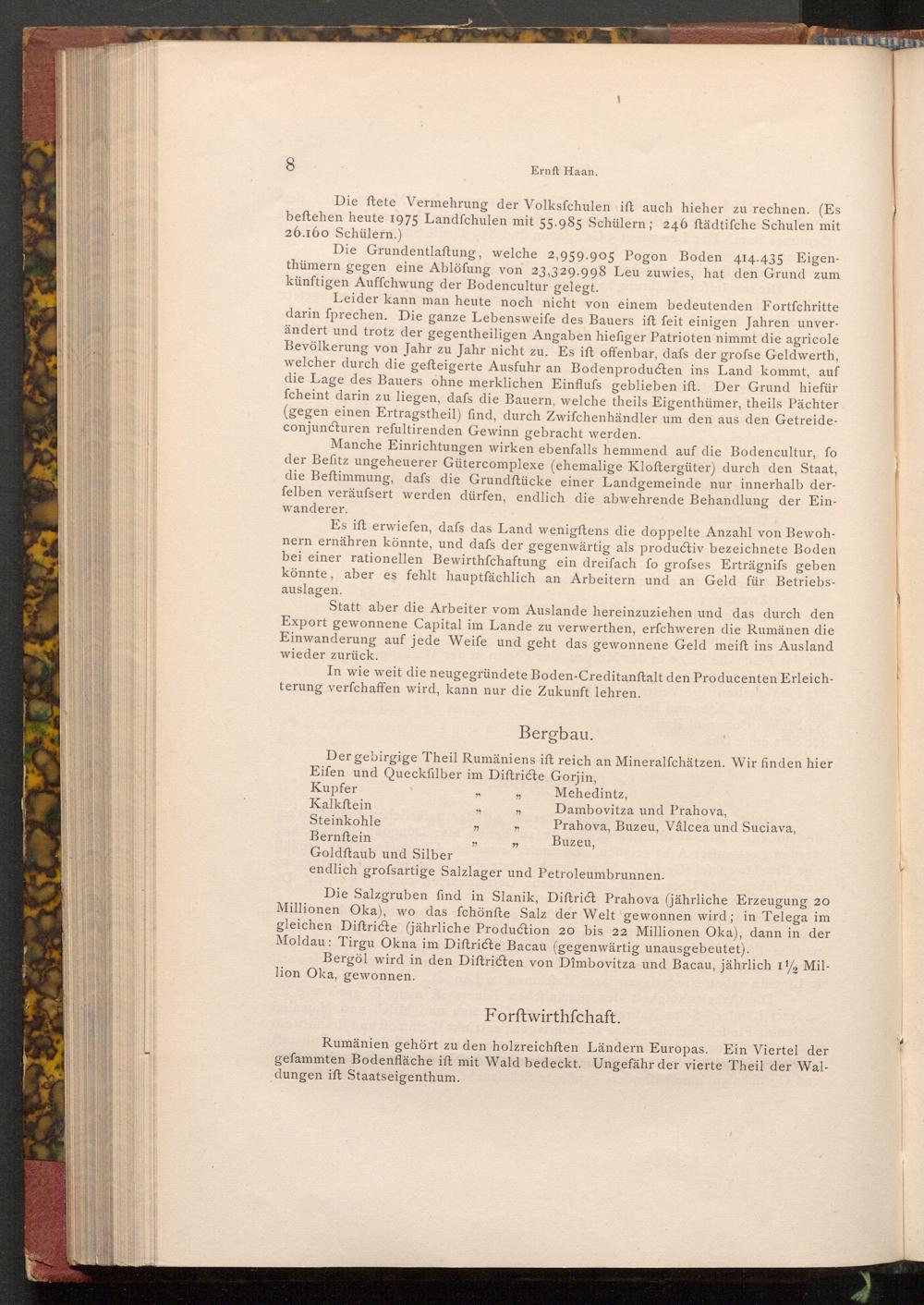 Rumänien gehört zu den holzreichften Ländern Europas. Ein Viertel der gefammten Bodenfläche iſt mit Wald bedeckt. Ungefähr der vierte Theil der Waldungen ift Staats eigenthum.