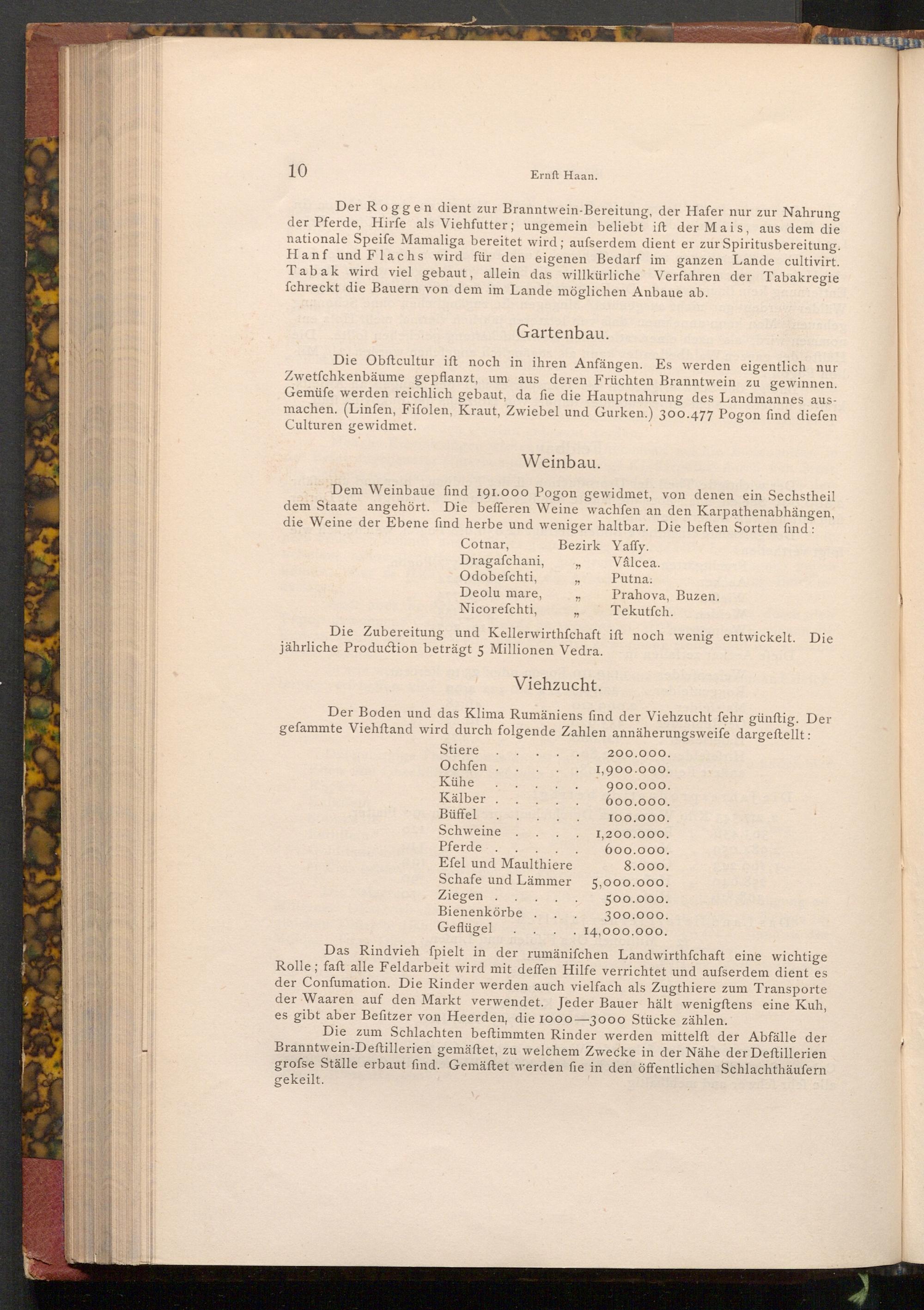 Der Boden und das Klima Rumäniens find der Viehzucht fehr günftig. Der gefammte Viehftand wird durch folgende Zahlen annäherungsweife dargestellt: