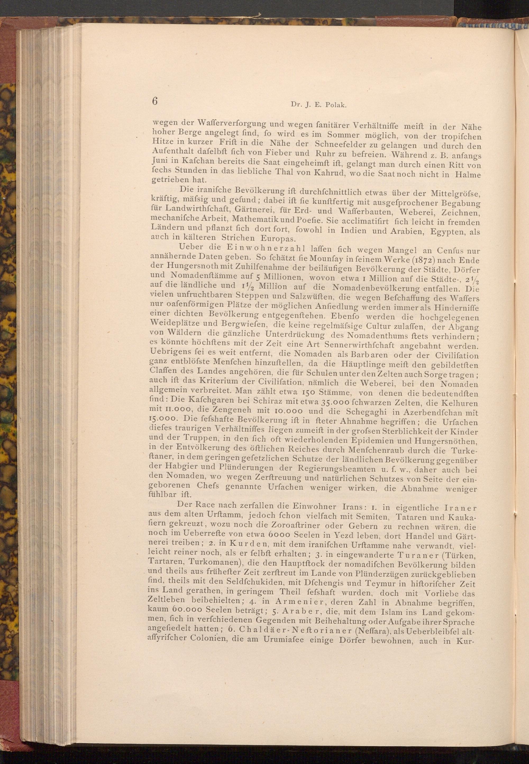 Die iranifche Bevölkerung ift durchſchnittlich etwas über der Mittelgröfse, kräftig, mässig und gefund; dabei ift fie kunftfertig mit ausgefprochener Begabung für Landwirthschaft, Gärtnerei, für Erd- und Wafferbauten, Weberei, Zeichnen, mechanifche Arbeit, Mathematik und Poefie. Sie acclimatifirt fich leicht in fremden Ländern und pflanzt fich dort fort, fowohl in Indien und Arabien, Egypten, als auch in kälteren Strichen Europas.