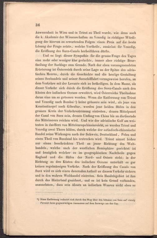 Anwesenheit in Wien und in Triest zu Theil wurde, wie denn auch die k. Akademie der Wissenschaften zu Venedig in richtiger Würdigung der hiervon zu erwartenden Folgen einen Preis auf die beste Lösung der Frage setzte, welche Vortheile, zunächst für Venedig, die Eröffnung des Suez-Canals herbeiführen dürfte.