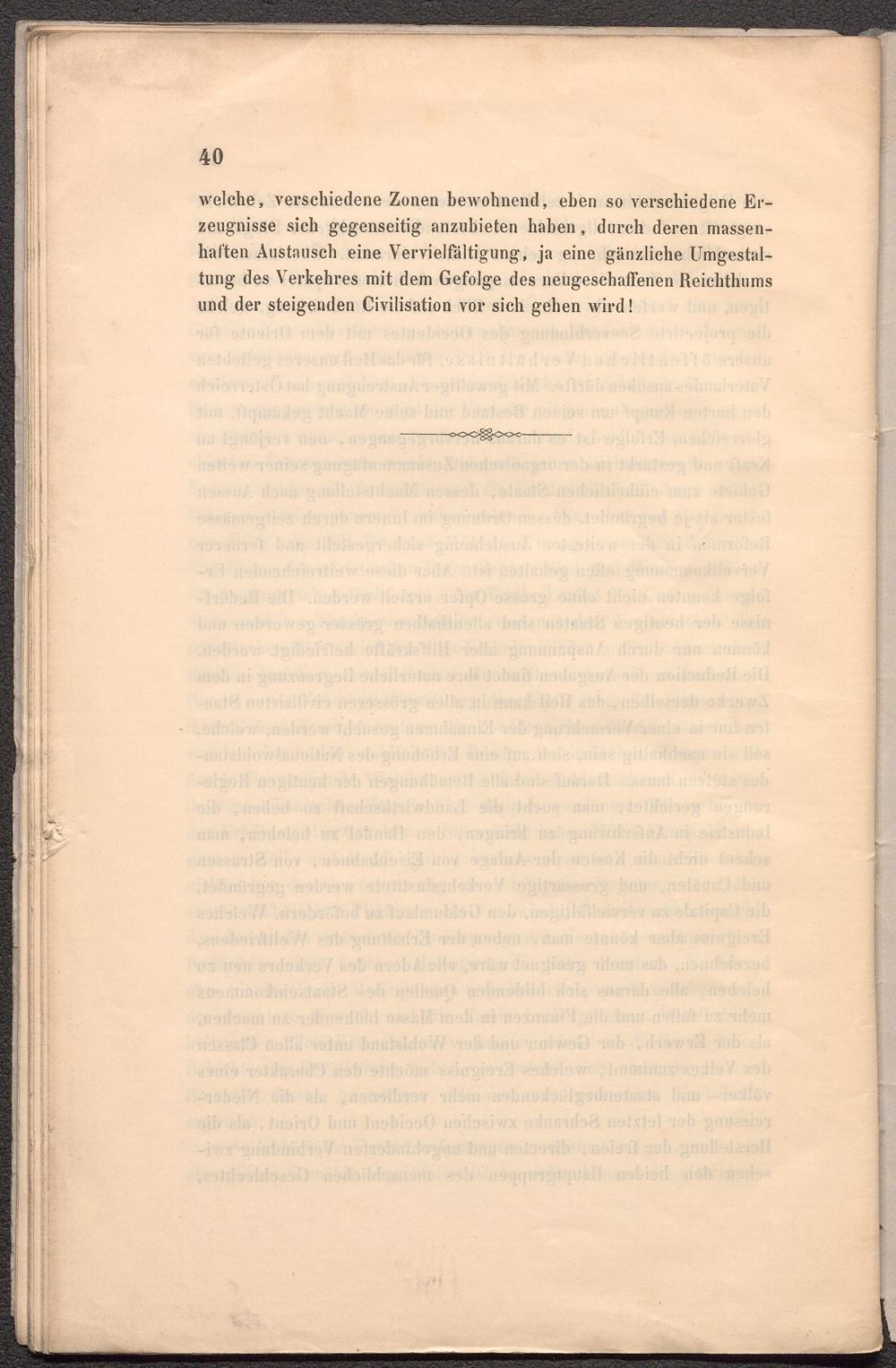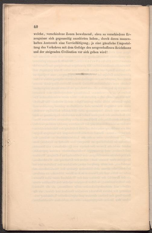 welche, verschiedene Zonen bewohnend, eben so verschiedene Erzeugnisse sich gegenseitig anzubieten haben, durch deren massenhaften Austausch eine Vervielfältigung, ja eine gänzliche Umgestaltung des Verkehres mit dem Gefolge des neugeschaffenen Reichthums und der steigenden Civilisation vor sich gehen wird!
