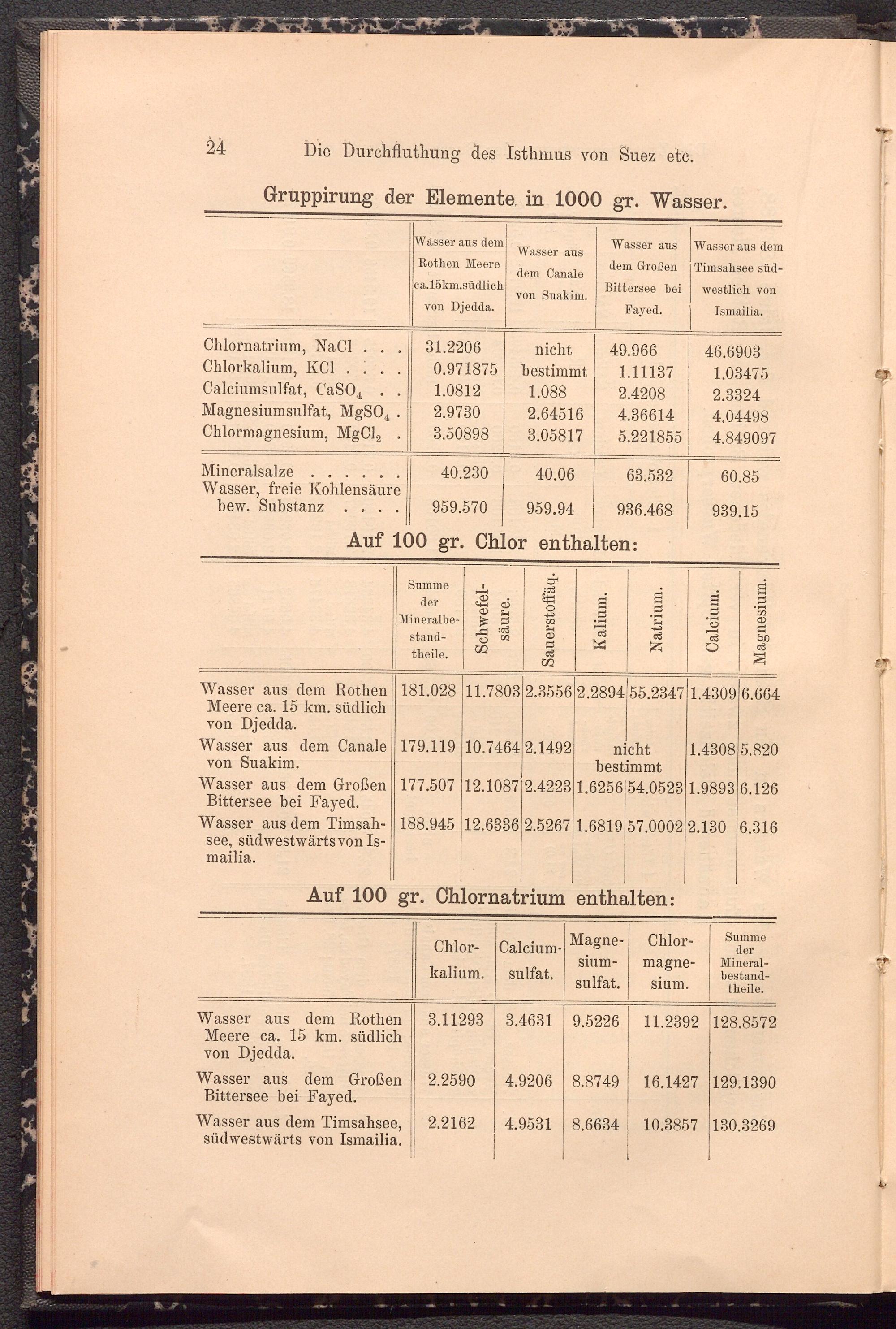 Gruppirung der Elemente in 1000 gr. Wasser.