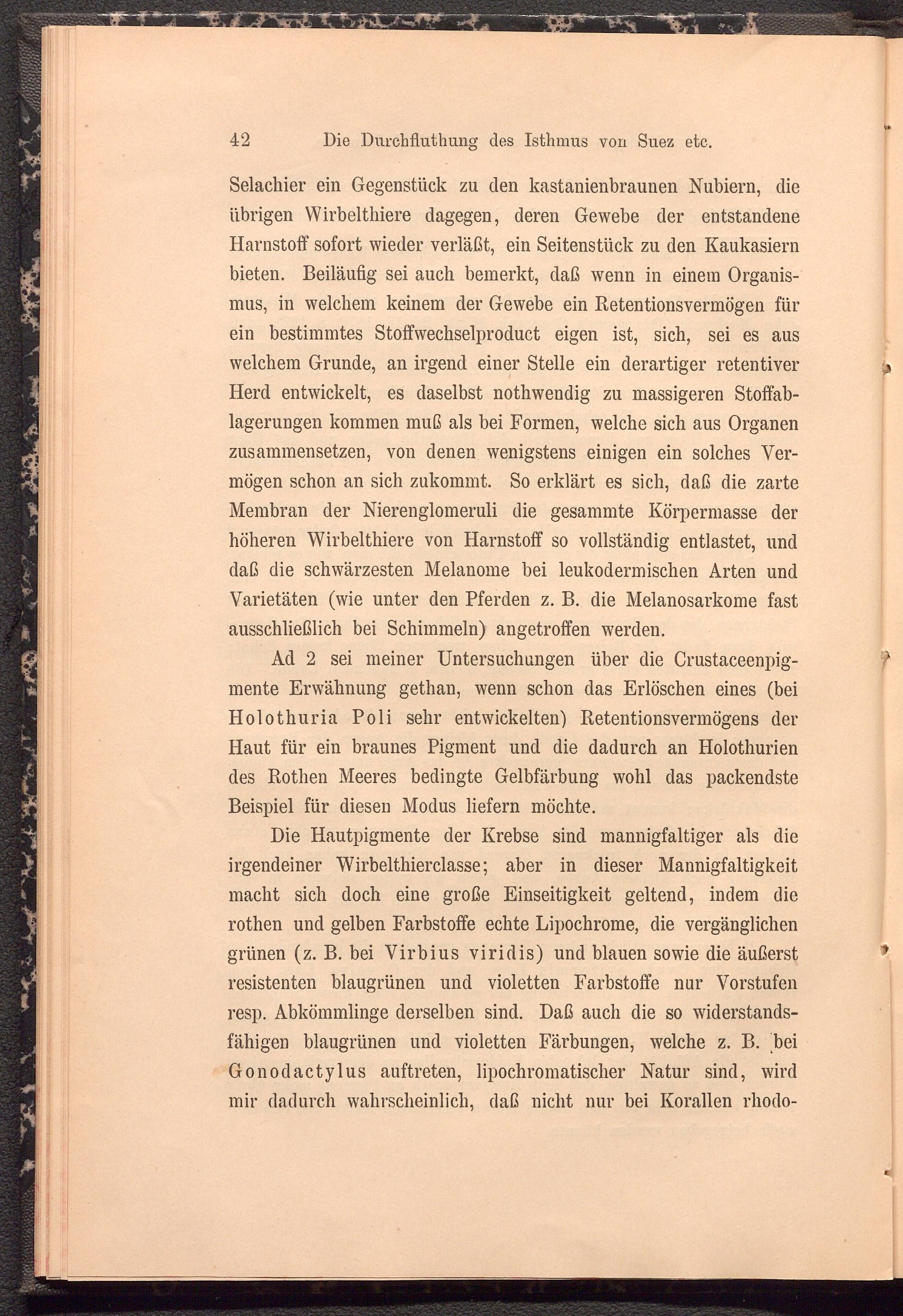 Ad 2 sei meiner Untersuchungen über die Crustaeeenpig- mente Erwähnung gethan, wenn schon das Erlöschen eines (bei Holothuria Poli sehr entwickelten) Retentionsvermögens der Haut für ein braunes Pigment und die dadurch an Holothurien des Rothen Meeres bedingte Gelbfärbung wohl das packendste Beispiel für diesen Modus liefern möchte.