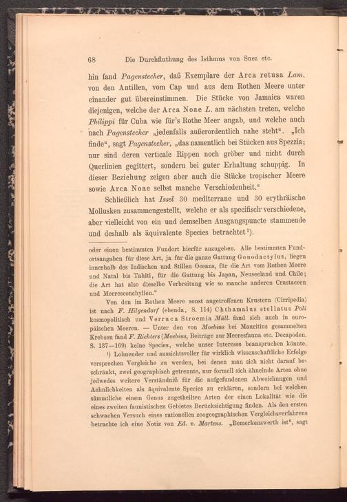Von den im Rothen Meere sonst angetroffenen Krustern (Cirripedia) ist nach F. Hilgendorf (ebenda, S. 114) Chthamalus stellatus Poli kosmopolitisch und Verruca Stroemia Müll, fand sich auch in europäischen Meeren. — Unter den von Moebius bei Mauritius gesammelten Krebsen fand F. Richters {Moebius, Beiträge zur Meeresfauna etc. Decapoden, S. 137—169) keine Species, welche unser Interesse beanspruchen könnte..