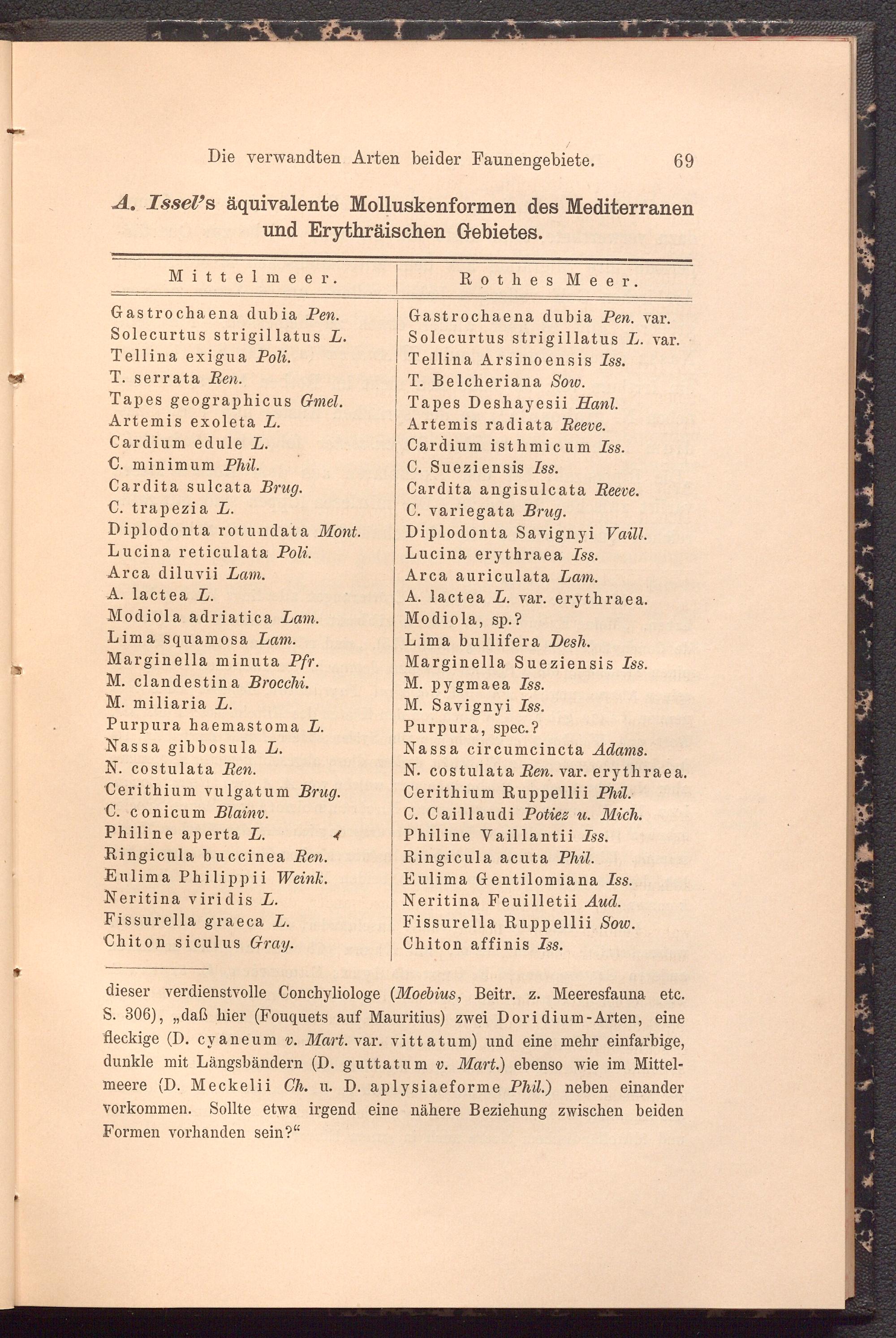 A. Issel ’s äquivalente Molluskenformen des Mediterranen und Erythräischen Gebietes.