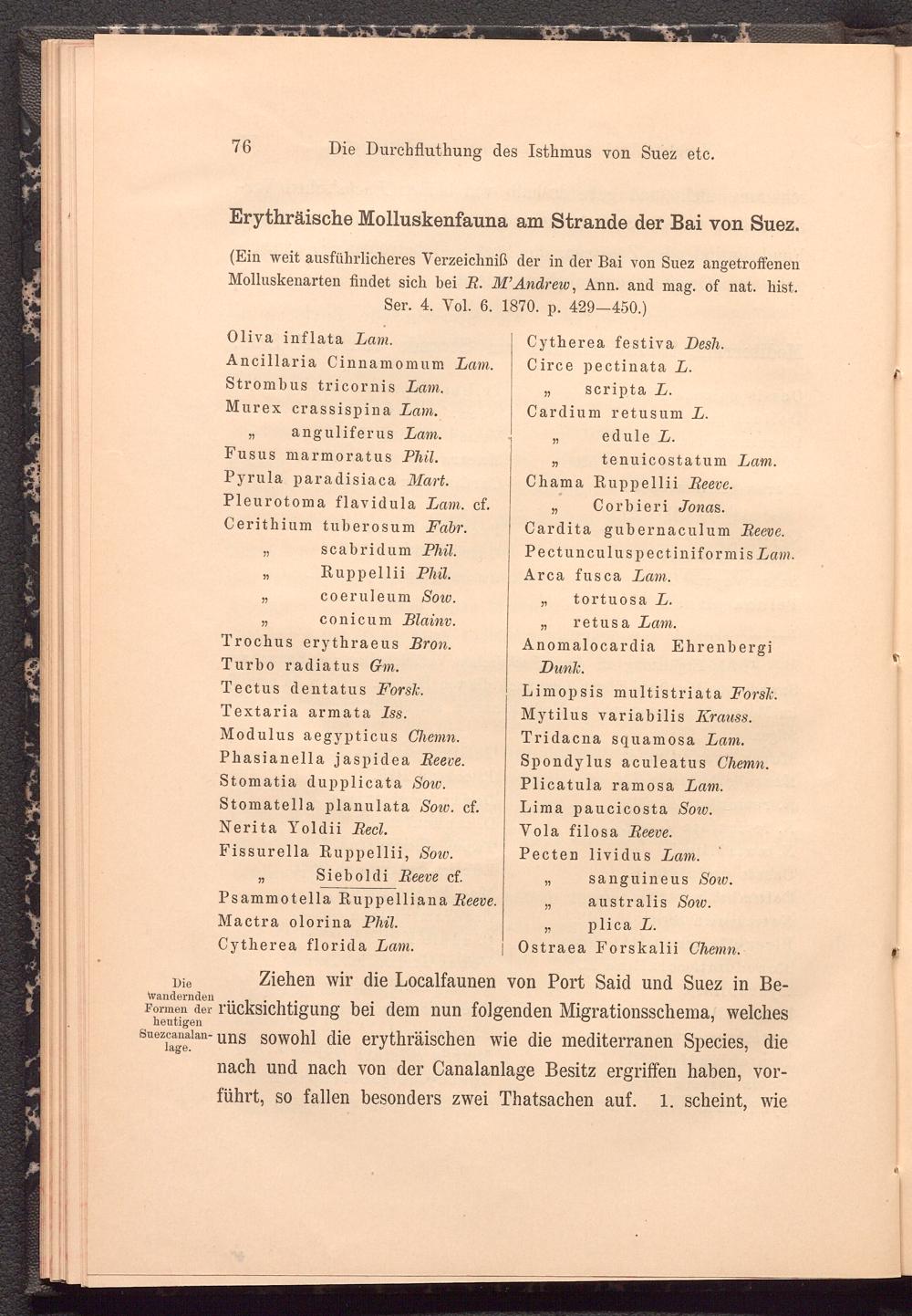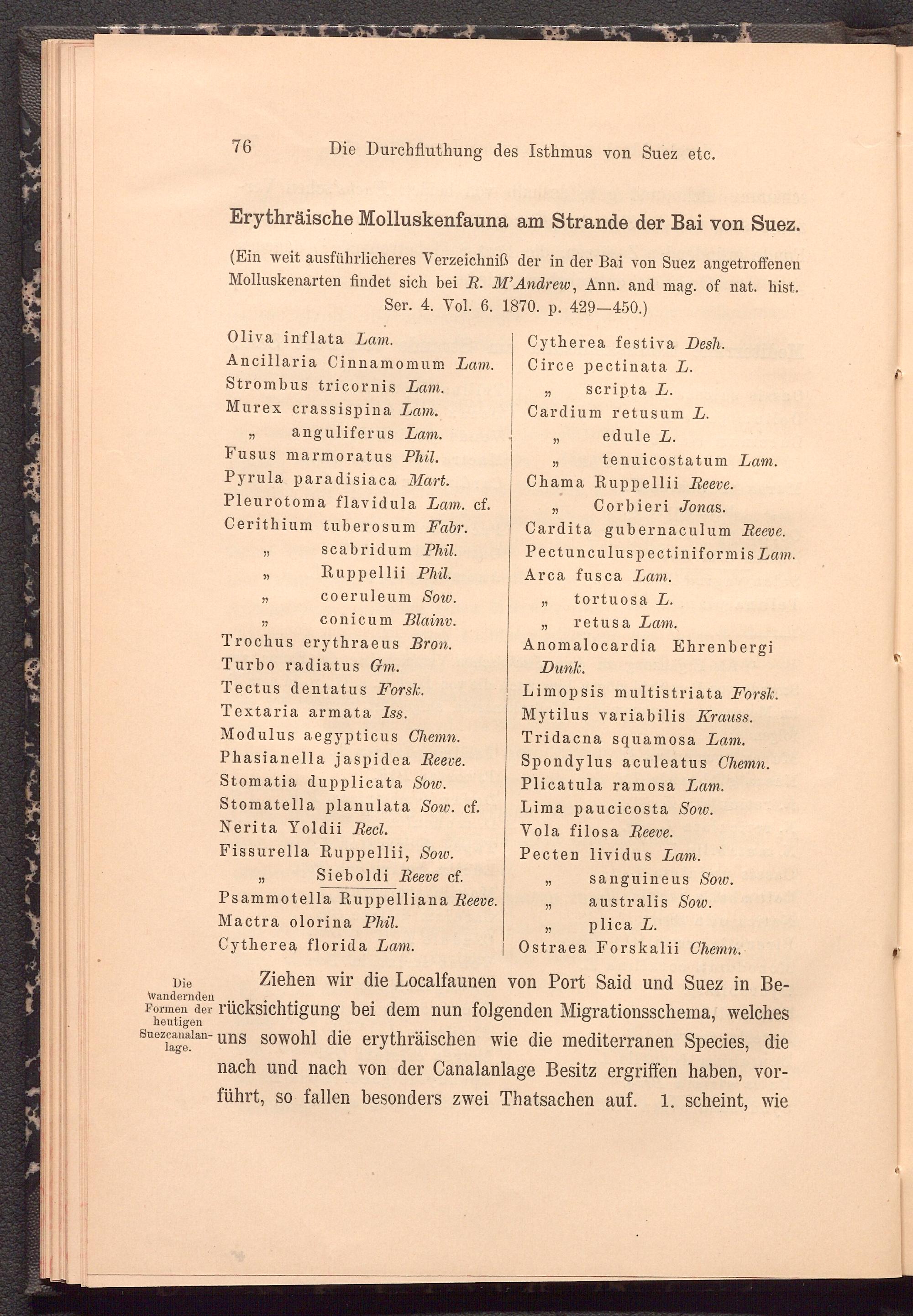 (Ein weit ausführlicheres Yerzeichniß der in der Bai von Suez angetroffenen Molluskenarten findet sich bei B. M’Andrew, Ann. and mag. of nat. hist. Ser. 4. Yol. 6. 1870. n. 429—450.1