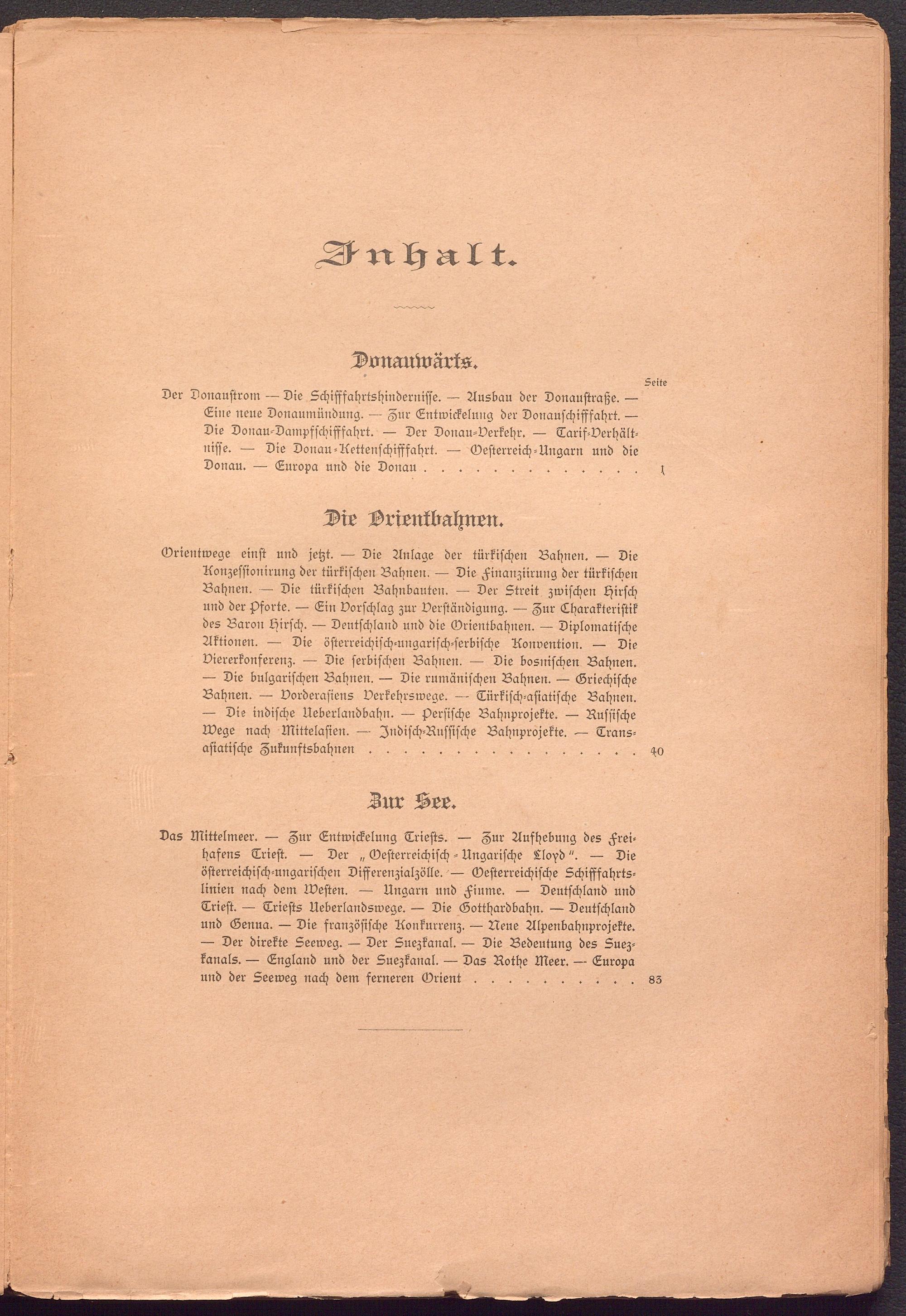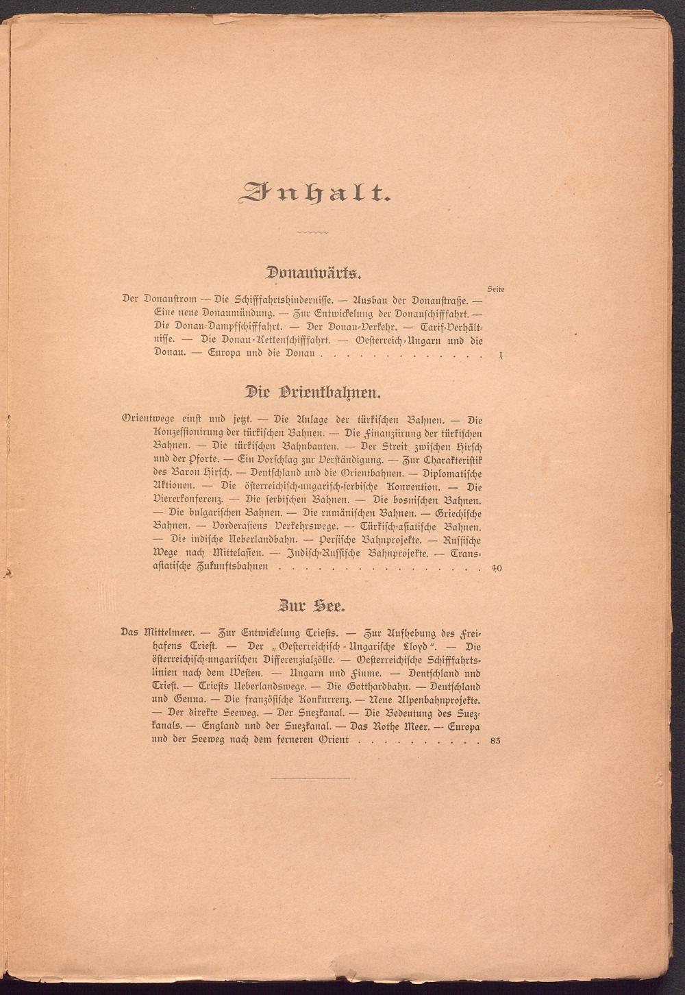 Das Mittelmeer. — Zur Entwickelung Triests. — Zur Aufhebung des Freihafens Trieft. — Der „ Oesterreichisch - Ungarische Lloyd". — Die österreichisch-ungarischen Differenzialzölle. — Oesterreichische Schifffahrtslinien nach dem Westen. — Ungarn und Fiume. — Deutschland und Trieft. — Triests Ueberlandswege. — Die Gotthardbahn. — Deutschland und Genua. — Die französische Konkurrenz. — Neue Alpenbahnprojekte.