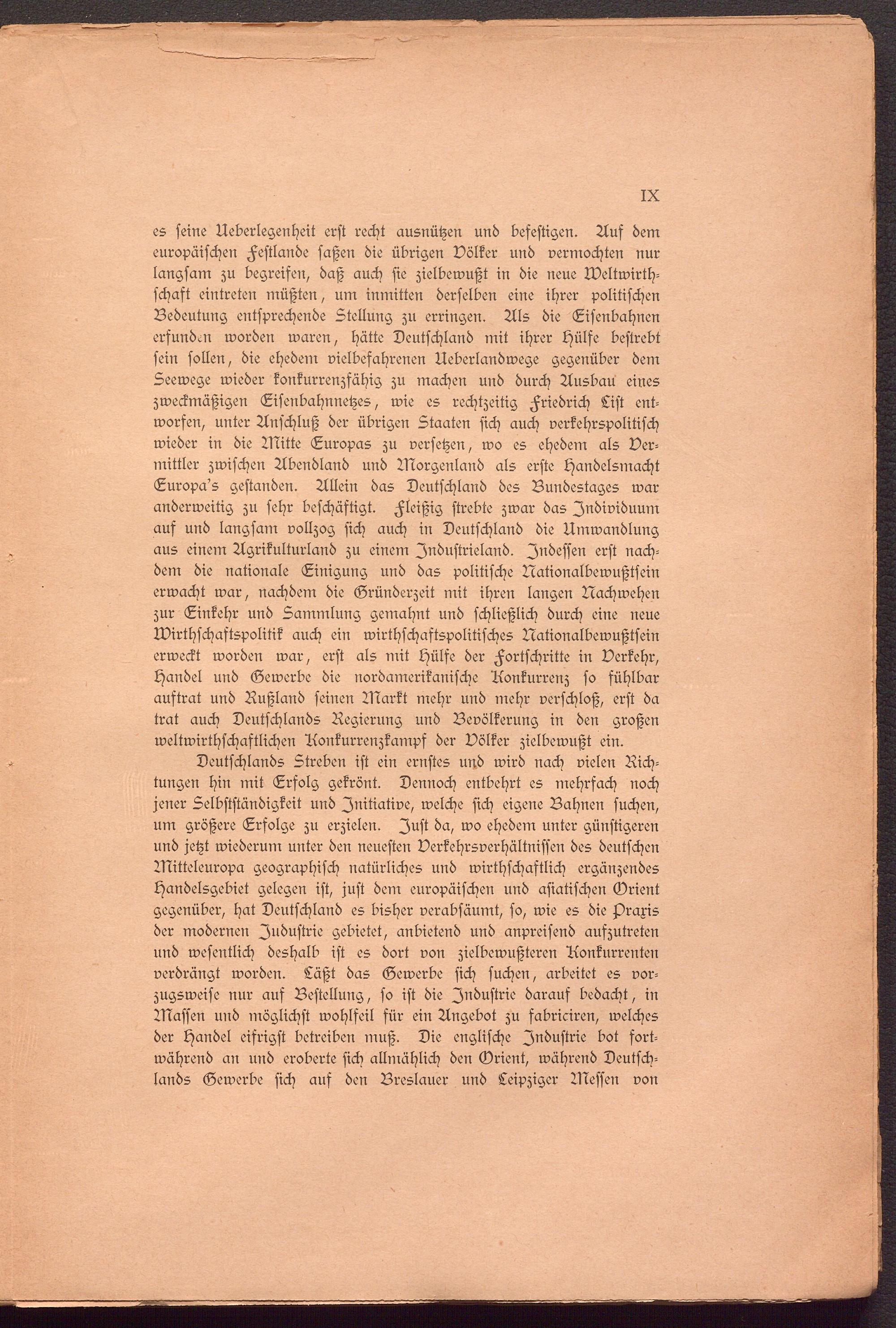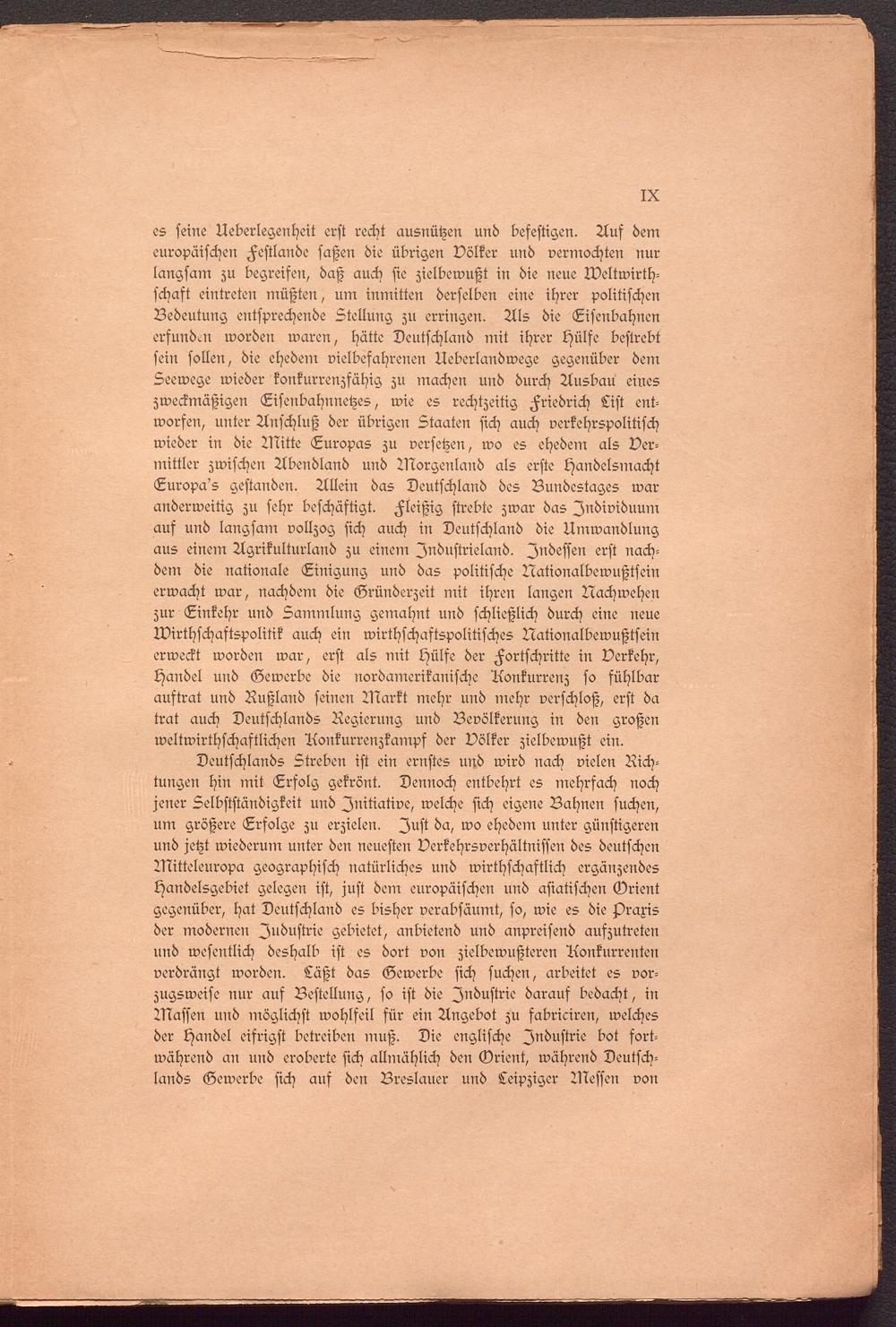 Deutschlands Streben ist ein ernstes und wird nach vielen Richtungen hin mit Erfolg gekrönt. Dennoch entbehrt es mehrfach noch sener Selbständigkeit und Initiative, welche sich eigene Bahnen suchen, um größere Erfolge zu erzielen. Just da, wo ehedem unter günstigeren und jetzt wiederum unter den neuesten Verkehrsverhältnissen des deutschen Mitteleuropa geographisch natürliches und wirtschaftlich ergänzendes Handelsgebiet gelegen ist, just dem europäischen und asiatischen Orient gegenüber, hat Deutschland es bisher verabsäumt, so, wie es die Praxis der modernen Iudustrie gebietet, anbietend und anpreisend aufzutreten und wesentlich deshalb ist es dort von zielbewußteren Konkurrenten verdrängt worden. Läßt das Gewerbe sich suchen, arbeitet es vorzugsweise nur aus Bestellung, so ist die Industrie daraus bedacht, in Waffen und möglichst wohlfeil für ein Angebot zu sabriciren, welches der Handel eifrigst betreiben muß. Die englische Industrie bot fortwährend an und eroberte sich allmählich den Orient, während Deutschlands Gewerbe sich aus den Breslauer und Leipziger Messen von