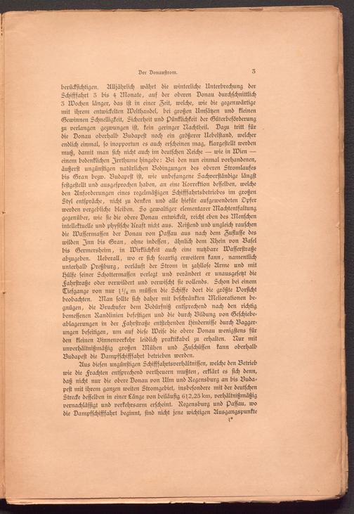 Aus diesen ungünstigen Schifffahrtsverhältnissen, welche den Betrieb wie die Frachten entsprechend vertheuern mußten, erklärt es sich denn, daß nicht nur die obere Donau von Ulm und Regensburg an bis Budapest mit ihrem ganzen weiten Stromgebiet, insbesondere mit der deutschen Strecke desselben in einer Länge von beiläufig 6^2,25 km, verhältnißmäßig vernachlässigt und verkehrsarm erscheint. Regensburg und Aassau, wo die Dampfschifffahrt beginnt, sind nicht jene wichtigen Ausgangspunkte