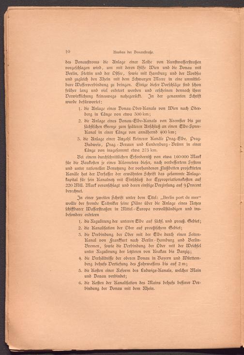 3. die Anlage einer Anzahl kleinerer Ranäle H>rag-Elbe, sDrag- Budweis, jDrag - Beraun und Lundenburg - Brünn in einer Länge von insgesammt etwa 273 km.