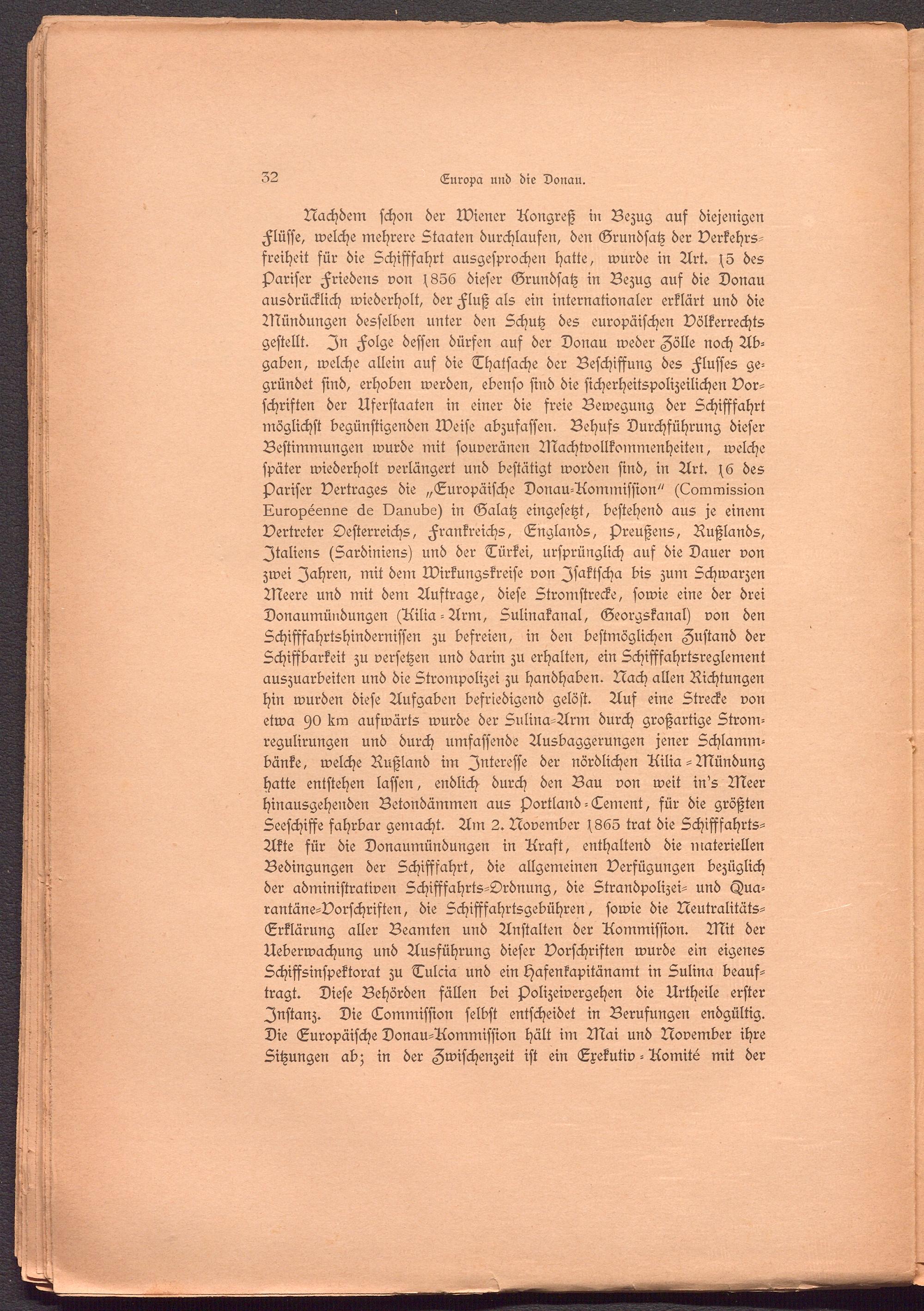 Nachdem schon der Wiener Kongreß in Bezug auf diejenigen Flüsse, welche mehrere Staaten durchlaufen, den Grundsatz der Verkehrsfreiheit für die Schifffahrt ausgesprochen hatte, wurde in Art. (5 des fDariser Friedens von (856 dieser Grundsatz in Bezug auf die Donau ausdrücklich wiederholt, der Fluß als ein internationaler erklärt und die Mündungen desselben unter den Schutz des europäischen Völkerrechts gestellt. In Folge dessen dürfen aus der Donau weder Zölle noch Abgaben, welche allein aus die Thatsache der Beschiffung des Flusses gegründet sind, erhoben werden, ebenso sind die sicherheitspolizeilichen Vorschriften der Uferstaaten in einer die freie Bewegung der Schiffsahrt möglichst begünstigenden Weise abzufassen. Behufs Durchführung dieser Bestimmungen wurde mit souveränen Machtvollkommenheiten, welche später wiederholt verlängert und bestätigt worden sind, in Art. (6 des pariser Vertrages die „Europäische Donau-Kommission" ((Commission Turopeenne cke Vmmds) in Galatz eingesetzt, bestehend aus je einem Vertreter Oesterreichs, Frankreichs, Englands, Preußens, Rußlands, Italiens (Sardiniens) und der Türkei, ursprünglich aus die Dauer von zwei Jahren, mit dem Wirkungskreise von Isaktscha bis zum Schwarzen Meere und mit dem Auftrage, diese Stromstrecke, sowie eine der drei Donaumündungen (Kilia-Arm, Sulinakanal, Georgskanal) von den Schiffsahrtshindernissen zu befreien, in den bestmöglichen Zustand der Schiffbarkeit zu versetzen und darin zu erhalten, ein Schifffahrtsreglement auszuarbeiten und die Strompolizei zu handhaben. Nach allen Richtungen hin wurden diese Aufgaben befriedigend gelöst. Auf eine Strecke von etwa 90 km aufwärts wurde der Sulina-Arm durch großartige Strom- regulirungen und durch umfassende Ausbaggerungen jener Schlammbänke, welche Rußland im Interesse der nördlichen Kilia - Mündung hatte entstehen lassen, endlich durch den Bau von weit in's Meer hinausgehenden Betondämmen aus Aortland - Tement, für die größten Seeschiffe fahrbar gemacht. Am 2. November (860 trat die SchifffahrtsAkte für die Donaumündungen in Kraft, enthaltend die materiellen Bedingungen der Schifffahrt, die allgemeinen Verfügungen bezüglich der administrativen Schifffahrts-Ordnung, die Strandpolizei- und Quarantäne-Vorschriften, die Schifffahrtsgebühren, sowie die Neutralitäts- Erklärung aller Beamten und Anstalten der Kommission. Mit der Ueberwachung und Ausführung dieser Vorschriften wurde ein eigenes Schiffsinspektorat zu Tulcia und ein Hafenkapitänamt in Sulina beauftragt. Diese Behörden fällen bei polizeivergehen die Urtheile erster Instanz. Die Tommission selbst entscheidet in Berufungen endgültig. Die Europäische Donau-Kommission hält im Mai und November ihre Sitzungen ab; in der Zwischenzeit ist ein Exekutiv - Komite mit der