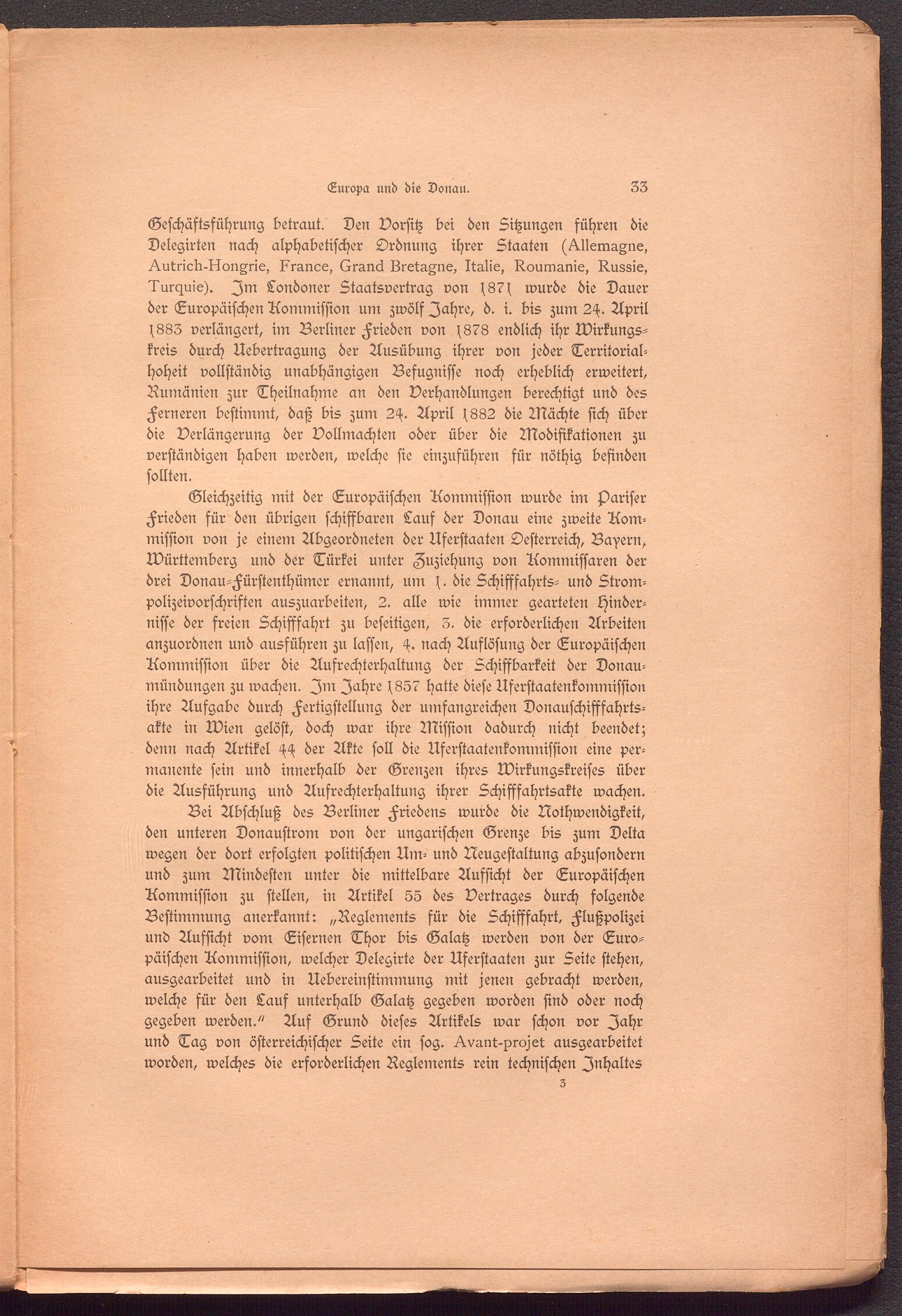 Gleichzeitig mit der Europäischen Aommission wurde im pariser Frieden für den übrigen schiffbaren Lauf der Donau eine zweite Aommission von je einem Abgeordneten der Uferstaaten Oesterreich, Bayern, Württemberg und der Türkei unter Zuziehung von Aommissaren der drei Donau-Fürstenthümer ernannt, um s. die Schifffahrts- und Strom- polizeivorschristen auszuarbeiten, 2. alle wie immer gearteten Hindernisse der freien Schifffahrt zu beseitigen, 3. die erforderlichen Arbeiten anzuordnen und ausführen zu lassen, nach Auflösung der Europäischen Aommission über die Aufrechterhaltung der Schiffbarkeit der Donaumündungen zu wachen. Im Jahre ^857 hatte diese Uferstaatenkommission ihre Aufgabe durch Fertigstellung der umfangreichen Donauschifffahrtsakte in Wien gelöst, doch war ihre Mission dadurch nicht beendet; denn nach Artikel ^ der Akte soll die Uferstaatenkommission eine permanente sein und innerhalb der Grenzen ihres Wirkungskreises über die Ausführung und Aufrechterhaltung ihrer Schifffahrtsakte wachen.