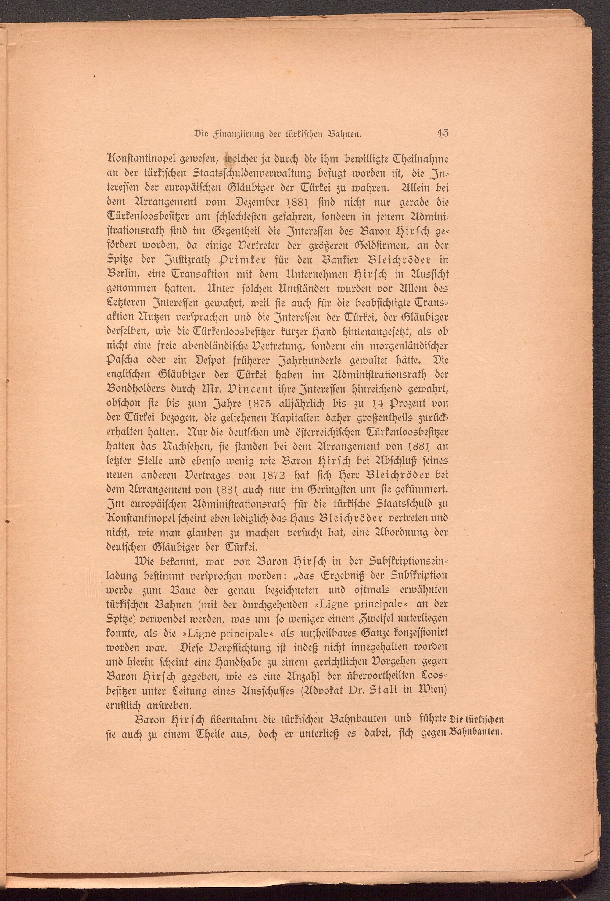 Im europäischen Administrationsrath für die türkische Staatsschuld zu Aonstantinopel scheint eben lediglich das Haus Bleichröder vertreten und nicht, wie man glauben zu machen versucht hat, eine Abordnung der deutschen Gläubiger der Türkei.