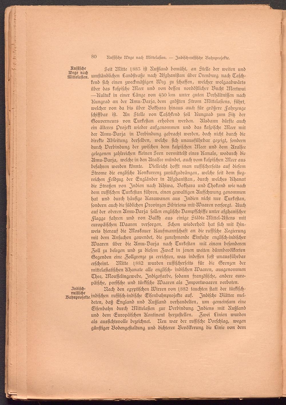 Russische Wege nach Mittelasien. — Indisch-russische Bahnxrojekte.