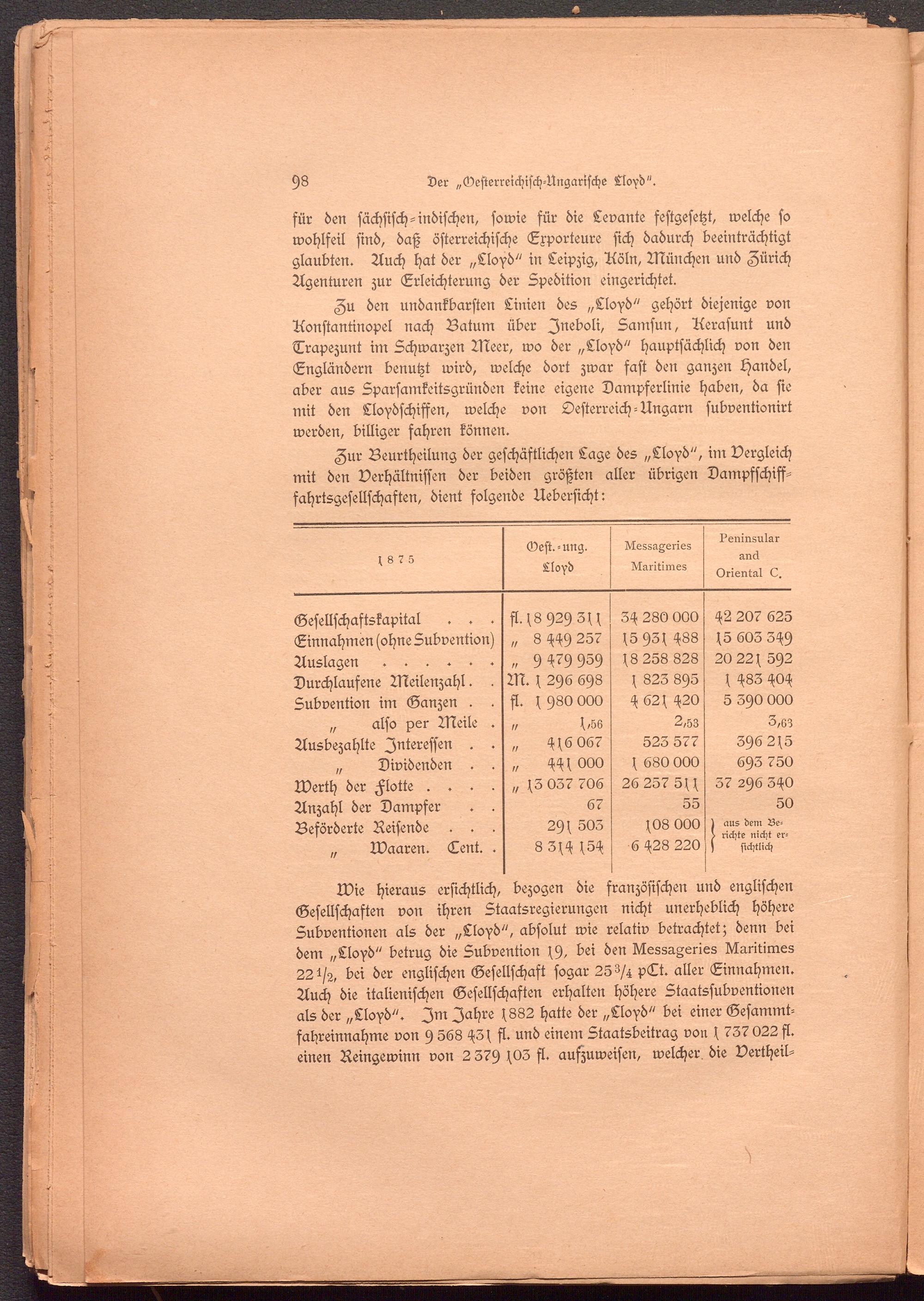 Zur Beurtheilung der geschäftlichen Lage des „Lloyd", im Vergleich mit den Verhältnissen der beiden größten aller übrigen Dampsschifs- sahrtsgesellschasten, dient folgende Uebersicht: