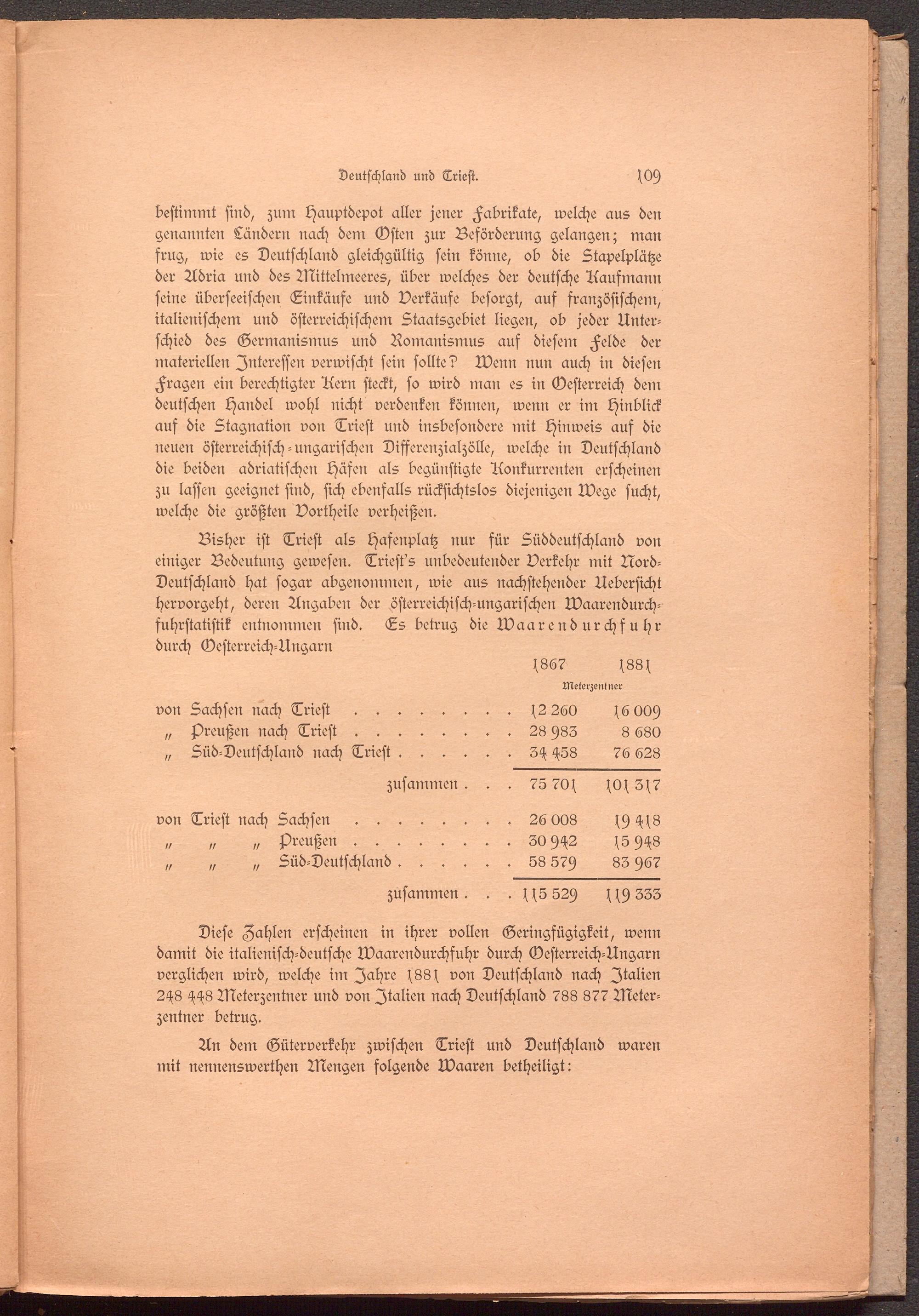 An dem Güterverkehr zwischen Triest und Deutschland waren mit nennenswerten Mengen folgende Waaren betheiligt: