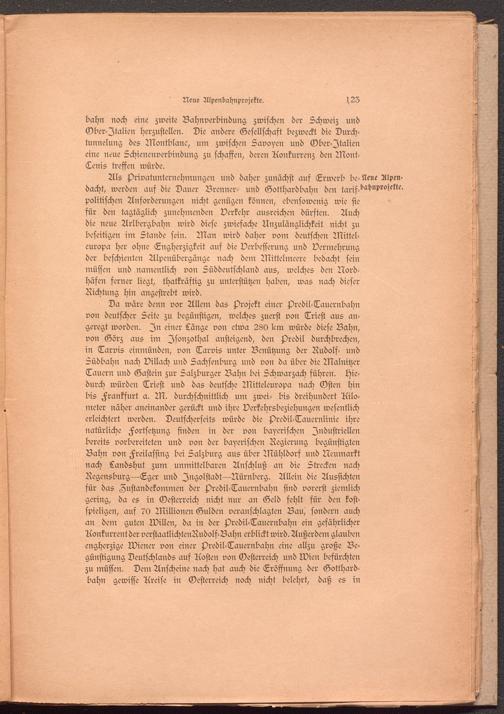 Als Arivatunternehmungen und daher zunächst auf Erwerb be-lleue Alpen- dacht, werden auf die Dauer Brenner- und Gotthardbahn den taris-^^Mc'M^ politischen Anforderungen nicht genügen können, ebensowenig wie sie für den tagtäglich zunehmenden Verkehr ausreichen dürften. Auch die neue Arlbergbahn wird diese zwiefache Unzulänglichkeit nicht zu beseitigen im Stande sein. Man wird daher vom deutschen Mittel- europa her ohne Engherzigkeit auf die Verbesserung und Vermehrung der beschienten Alpenübergänge nach dem Mittelmeere bedacht sein müssen und namentlich von Süddeutschland aus, welches den Nordhäfen ferner liegt, thatkräftig zu unterstützen haben, was nach dieser Richtung hin angestrebt wird.
