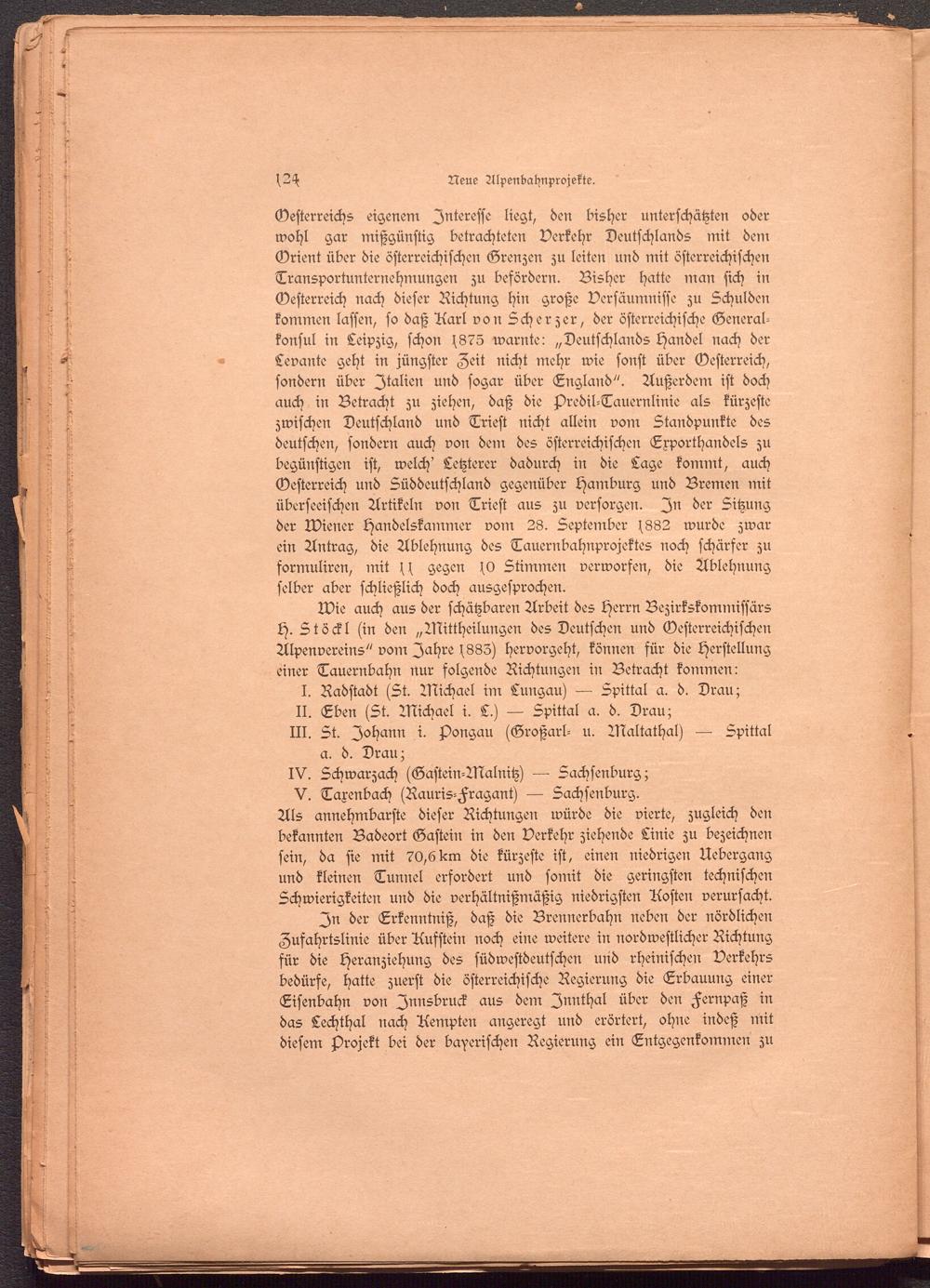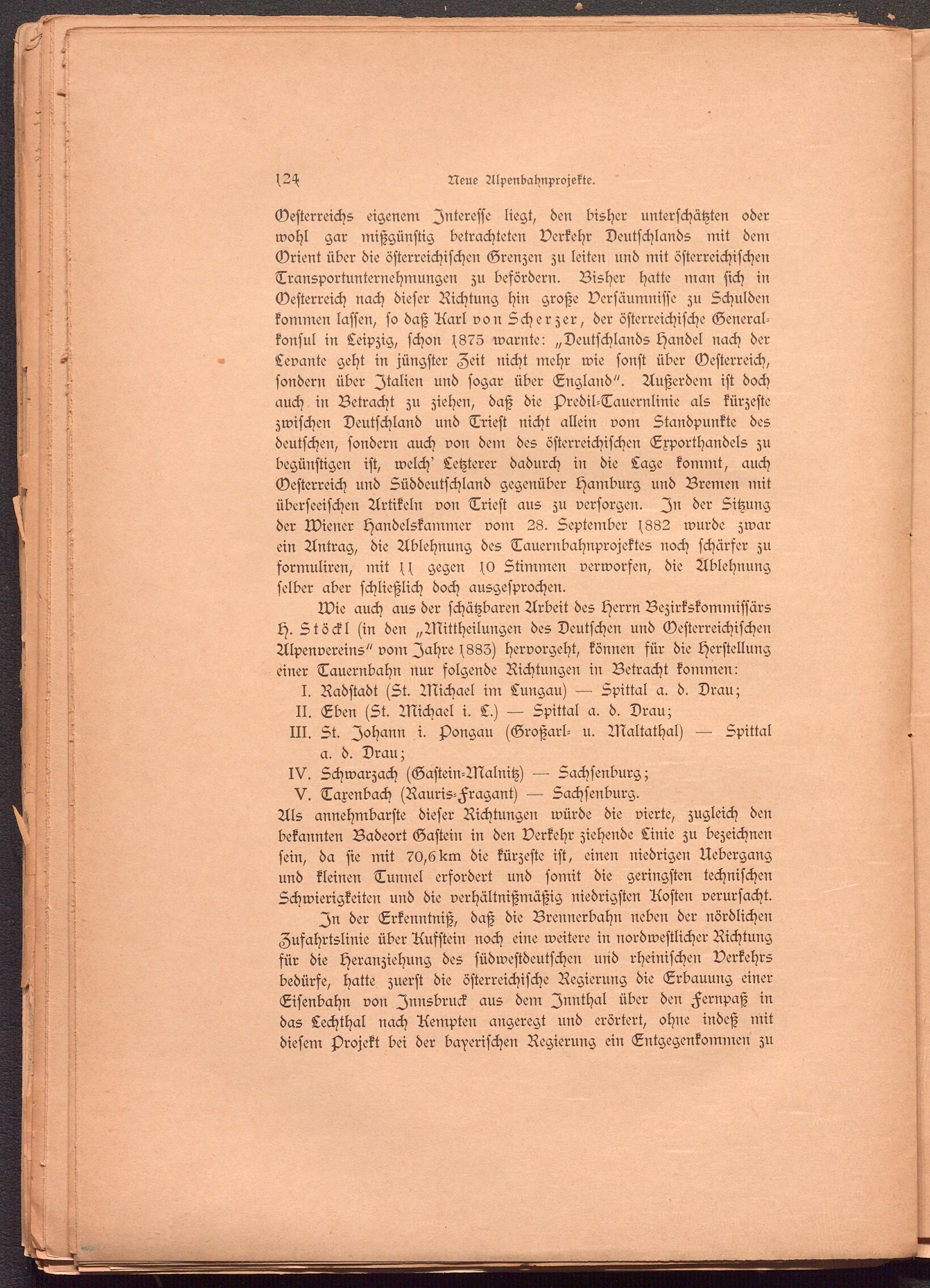 Wie auch aus der schätzbaren Arbeit des Herrn Bezirkskommissärs H. Stöckl (in den „Mittheilungen des Deutschen und Österreichischen Alpenvereins" vom Jahre s883) hervorgeht, können für die Herstellung einer Tauernbahn nur folgende Richtungen in Betracht kommen: