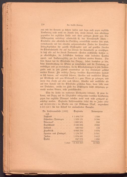 aus mit der Levante zu sichern haben und dazu auch gegen englische Aonkurrenz recht wohl im Stande sein, wenn einmal, was allerdings gegenüber der englischen Aohle und ihrer geringen Fracht zum Verschiffungsplatz unbedingt erforderlich ist, das Aanalprojekt Rhein — Emshäsen oder allenfalls der Vorschlag verwirklicht worden sein wird, versuchsweise mit den ohnehin aufzuwendenden Zinsen der Aanalbau- Anlagekapitalien für gewisse Massengüter und aus gewissen Strecken die Eisenbahntarife bis auf das Niveau der Aanaltarife zu ermäßigen, so daß also aus der Strecke Dortmund—(Linden westfälische Aohlen rc, zu allerbilligsten, die Selbstkosten durchaus nicht deckenden Tarifen export- und konkurrenzfähig zur See befördert werden könnten. Vor dem Aanal hat die Eisenbahn den Vorzug, sofort benützbar zu sein, keine Unterbrechung im Winter zu verursachen und die Verladung zu verbilligen und zu vereinfachen, da die Eisenbahnwagen in jede Aohlen- grube und in jede Fabrik unmittelbar an den Verladeort geführt werden können. Für wichtige Zweige deutscher Erportindustrie handelt es sich darum, auf möglichst sicheren, schnellen und wohlfeilen Wegen zur Weltstraße und zum Weltmarkt d. i. zum Meere zu gelangen, und wenn dies ebenso gut oder noch sicherer, schneller und wohlfeiler als auf dem Aanale mit der Eisenbahn geschehen kann, dann sollte man vor Versuchen, welche im Falle des Mißlingens leicht rückgängig gemacht werden können, nicht zurückschrecken.