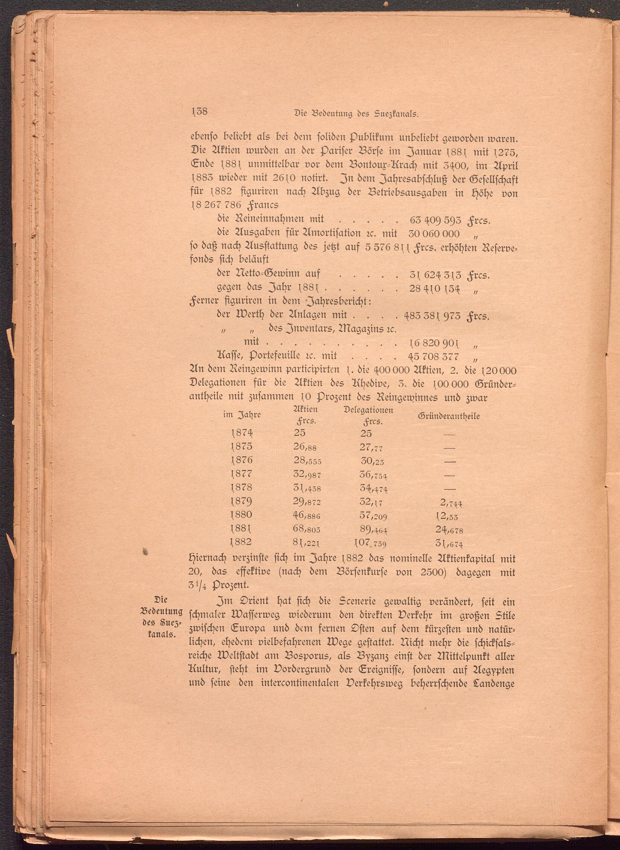 An denr Reingewinn participirten s. die ^00 000 Aktien, 2. die s20 000 Delegationen für die Aktien des Ahedive, 3. die s00 000 Gründerantheile mit zusammen s0 Prozent des Reingewinnes und zwar