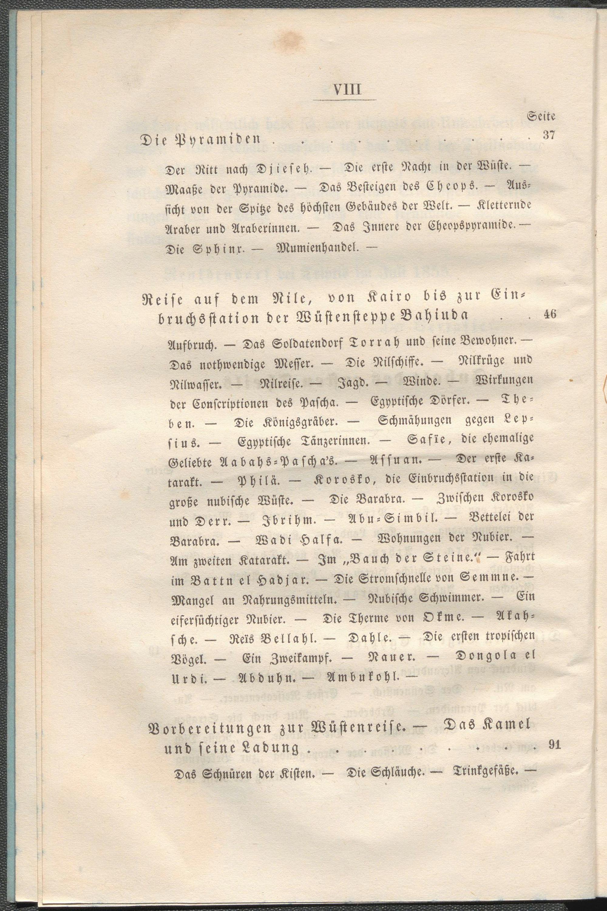 Das nothwendige Messer. — Die Nilschiffe. — Nilkrüge und Nilwasser. — Rilreise. — Jagd. — Winde. — Wirkungen der Conscriptionen des Pascha. — Egyptische Dörfer. — Theben. — Die Königsgräber. — Schmähungen gegen Lep- sius. — Egyptische Tänzerinnen. — Safte, die ehemalige Geliebte Aabahs-Pascha's. — Assuan. — Der erste Katarakt. — Philä. — Korosko, die Einbruchsstativn in die große nubische Wüste. — Die Barabra. — Zwischen Korosko und Derr. — Jbrihm. — Abu-Simbil. — Bettelei der Barabra. — WadiHalfa. — Wohnungen der Nubier. —
