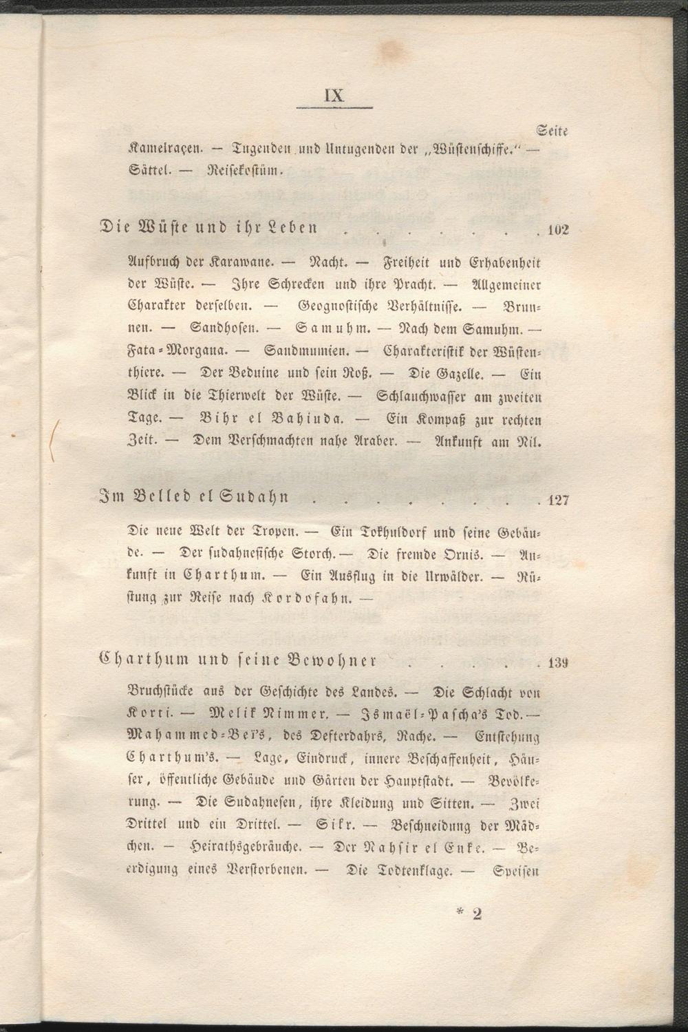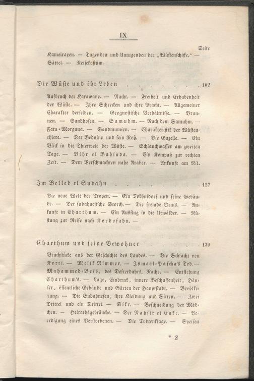 Bruchstücke aus der Geschichte des Landes. — Die Schlacht oon Korri. — Mclik Nimmer. — Is »iaöl - Pasch a's Tod. — Maham med-Bei's, des Defterdahrs, Rache. — Entstehung Charihum's. — Lage, Eindruck, innere Beschaffenheit. Häuser , öffentliche Gebäude und Gärten der Hauptstadt. — Beoölke- rung. — Die Sudahnesen, ihre Kleidung und Sitten. — Zwei Drittel und ein Drittel.— Sikr. — Beschneidnng der Mädchen. — Heirathsgebräuche. — Der Nahsir el Enke. — Beerdigung eines Verstorbenen. — Die Todtenklage. — Sveisen