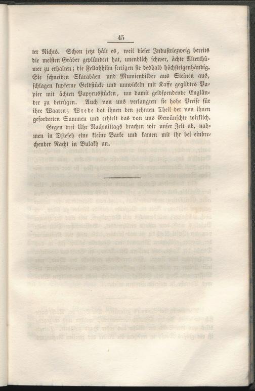 Gegen drei Uhr Nachmittags brachen wir unser Zelt ab, nahmen in Djicseh eine kleine Barke und kamen mit ihr bei einbrechender Nacht in Bulakh an.
