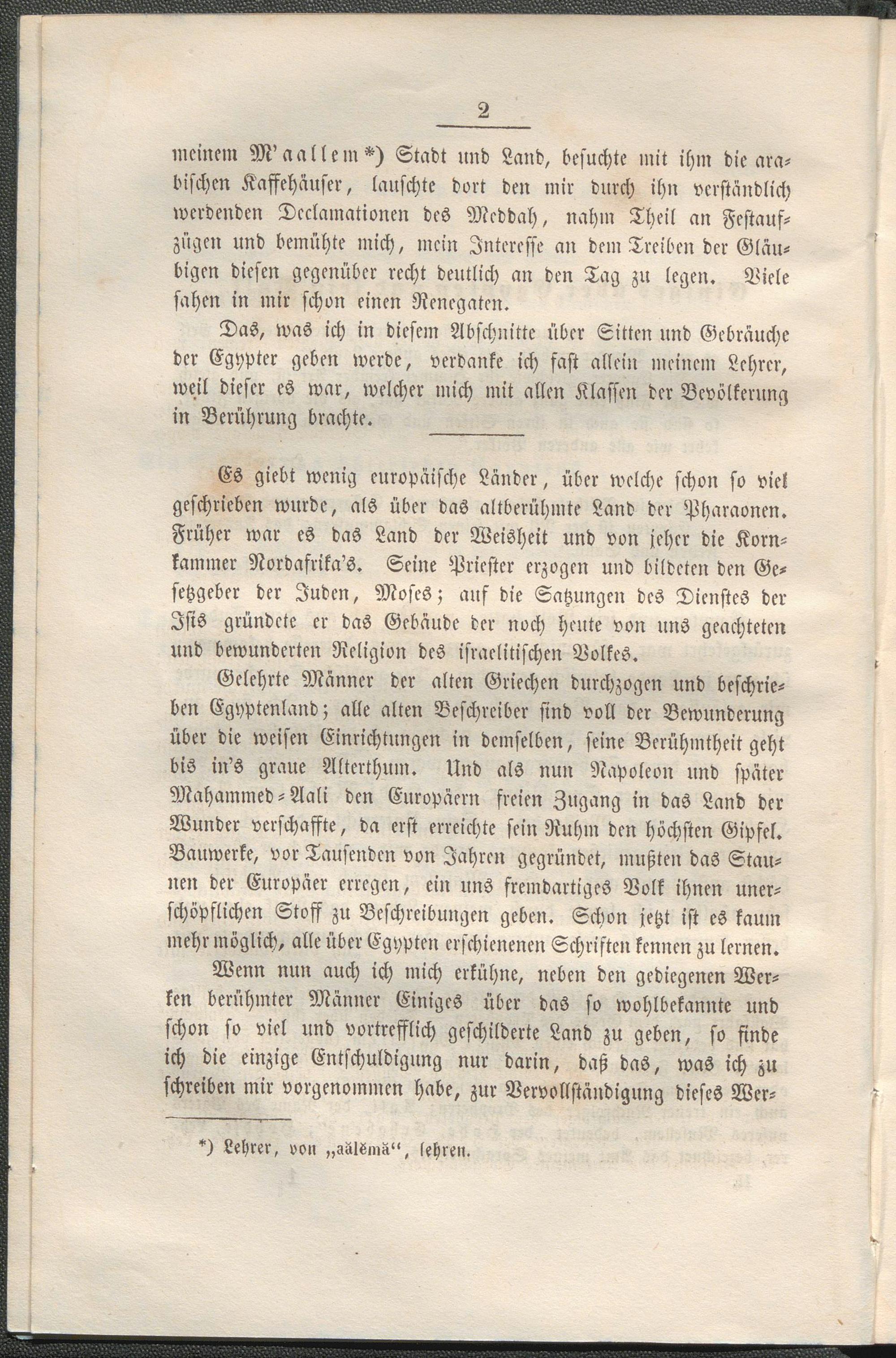 Das, was ich in diesem Abschnitte über Sitten und Gebräuche der Egypter geben werde, verdanke ich fast allein meinem Lehrer, weil dieser es war, welcher mich mit allen Klassen der Bevölkerung in Berührung brachte.