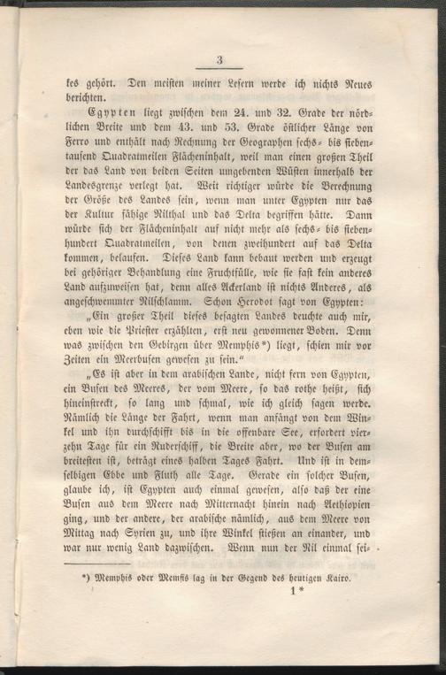 „Ein großer Theil dieses besagten Landes beuchte auch mir, eben wie die Priester erzählten, erst neu gewonnener Boden. Denn was zwischen den Gebirgen über Mcmphis*) liegt, schien mir vor Zeiten ein Meerbusen gewesen zu sein."