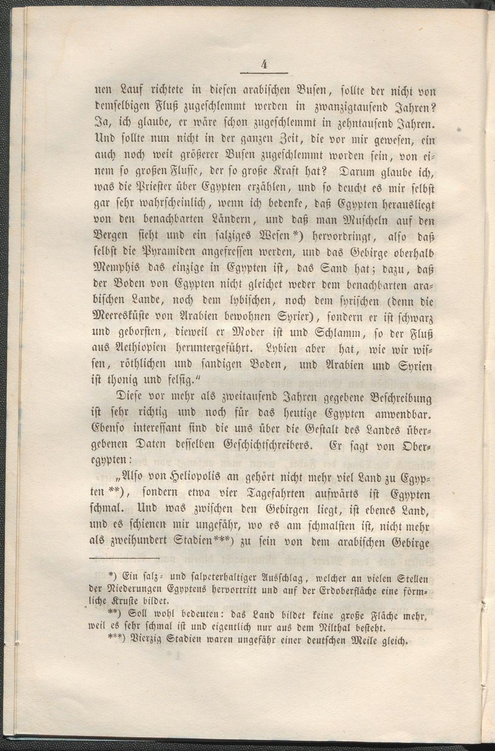 „Also von Heliopolis an gehört nicht mehr viel Land zu Egypten **), sondern etwa vier Tagefahrten aufwärts ist Egypten schmal. Und was zwischen den Gebirgen liegt, ist ebenes Land, und es schienen mir ungefähr, wo es am schmalstcn ist, nicht mehr als zweihundert Stadien***) zu sein von dem arabischen Gebirge