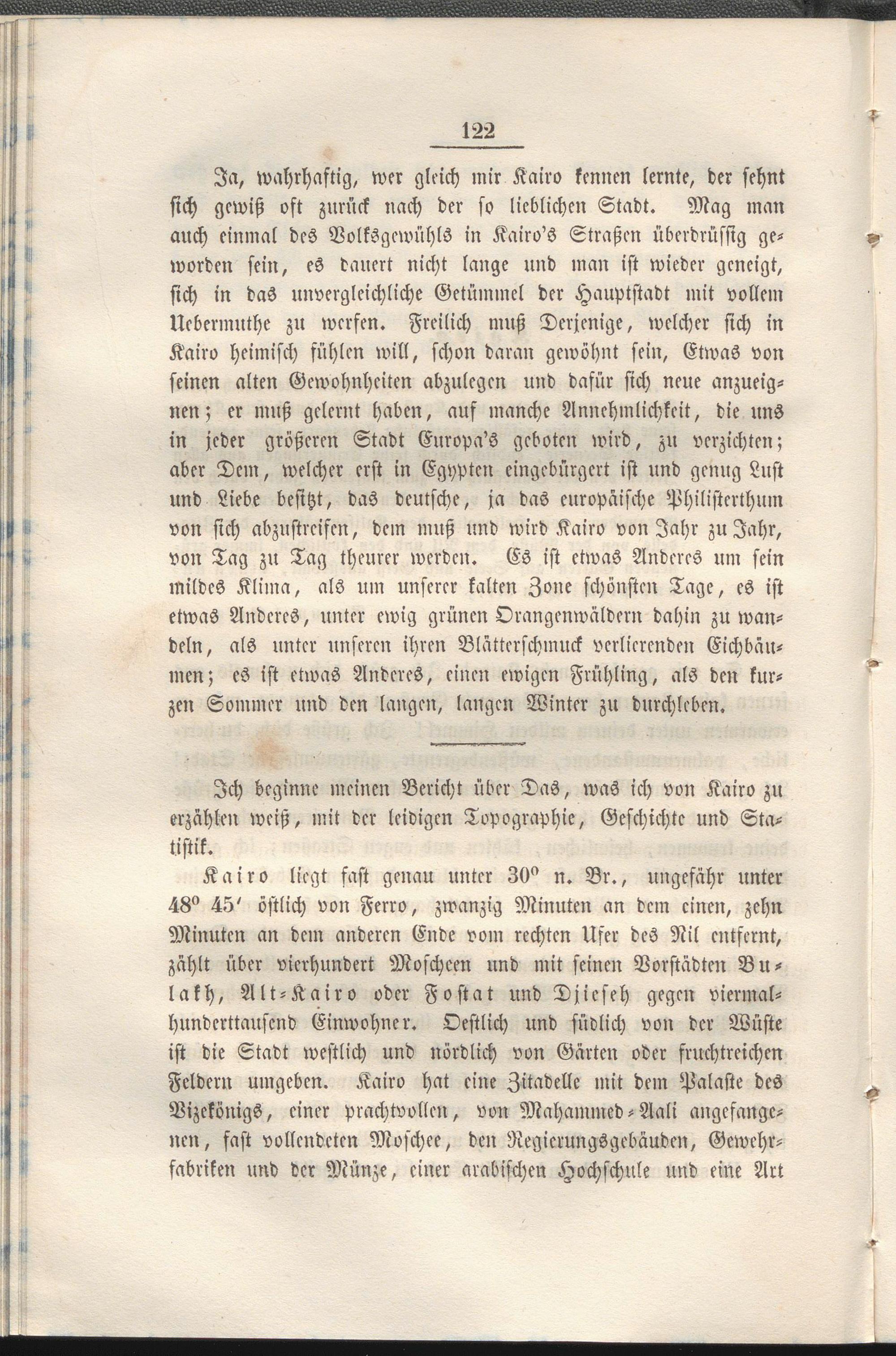 Ich beginne meinen Bericht über Das, was ich von Kairo zu erzählen weiß, mit der leidigen Topographie, Geschichte und Statistik.