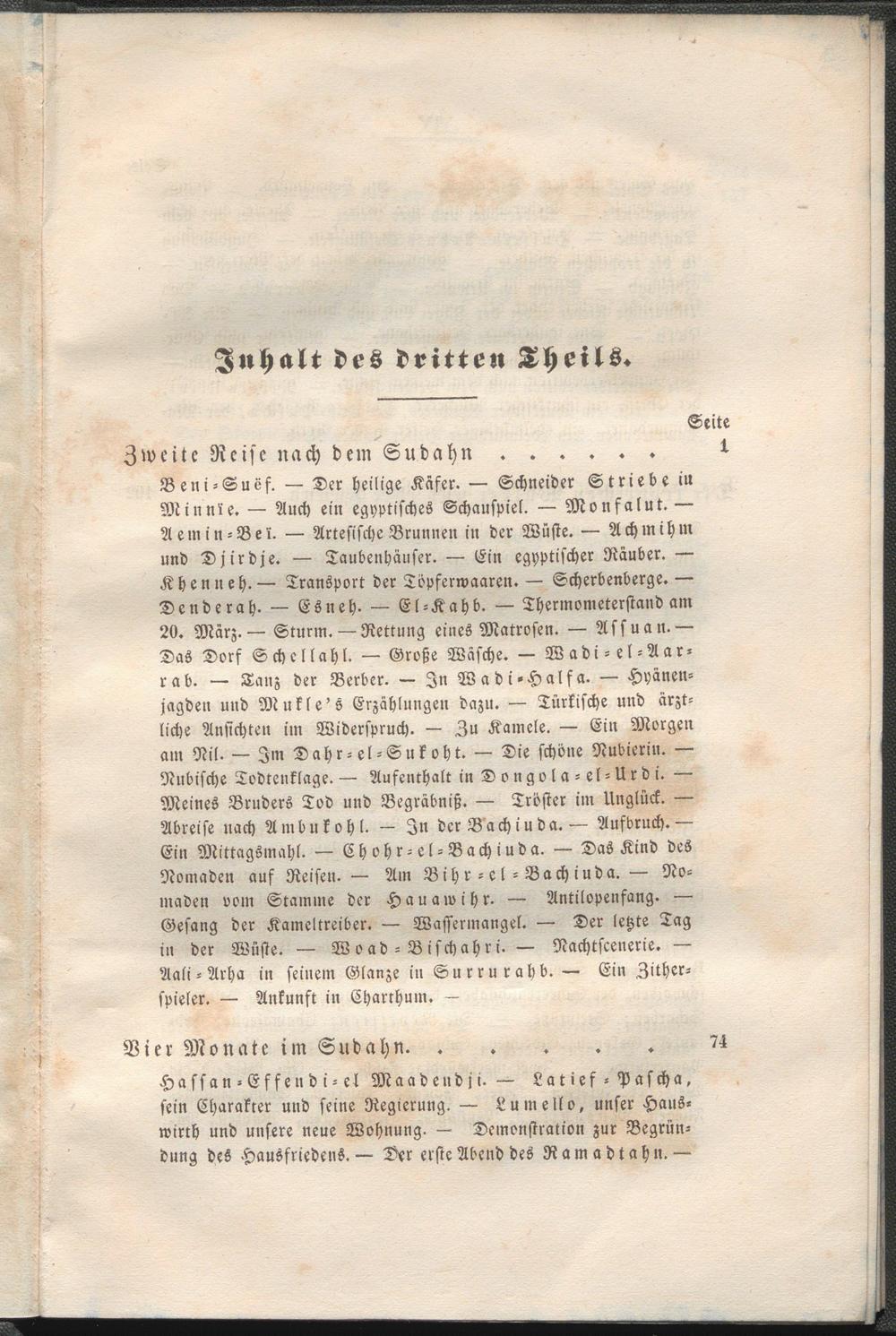 Das Dorf Schcllahl. — Große Wäsche. — Wadi-el-Aar- rab. — Tanz der Berber. — In Wadi-Halfa. — Hyänen- jagden und Mukle's Erzählungen dazu. — Türkische und ärztliche Ansichten im Widerspruch. — Zu Kamele. — Ein Morgen am Nil- — Im Dahr-el-Sukoht. — Die schöne Nubicrin. — Rubische Todtenklage.— Aufenthalt in D o n go l a - el-U rd i. — Meines Bruders Tod und Begräbniß. — Tröster im Unglück. — Abreise nach Ambukohl. — In der Bachiuda.— Aufdruch.—