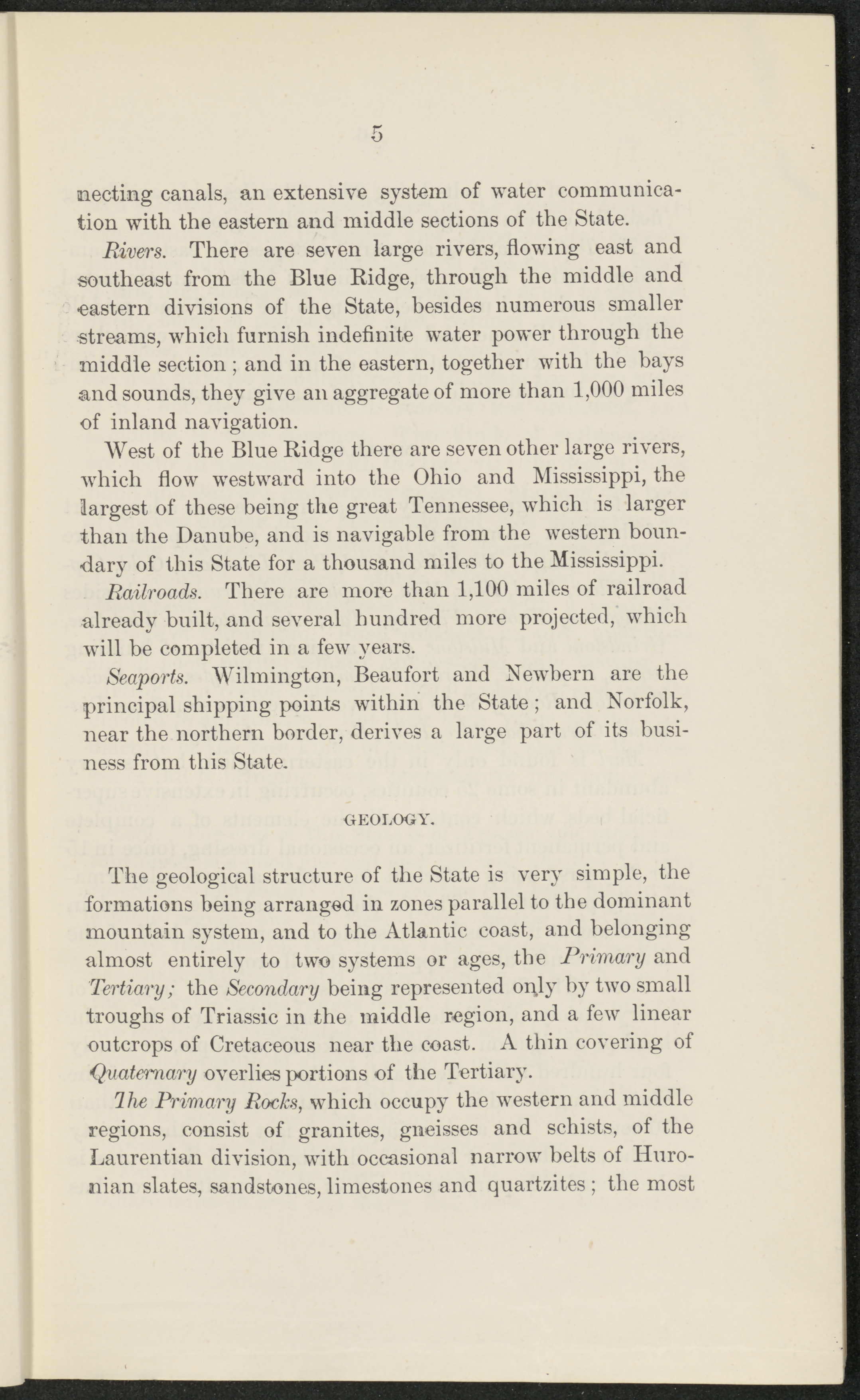 BIBL-WA163: Appendix of the report of the geological survey of North Carolina, 1873 : being a brief abstract of that report and a general description of the state, geographical, geological, climatic and agricultural.