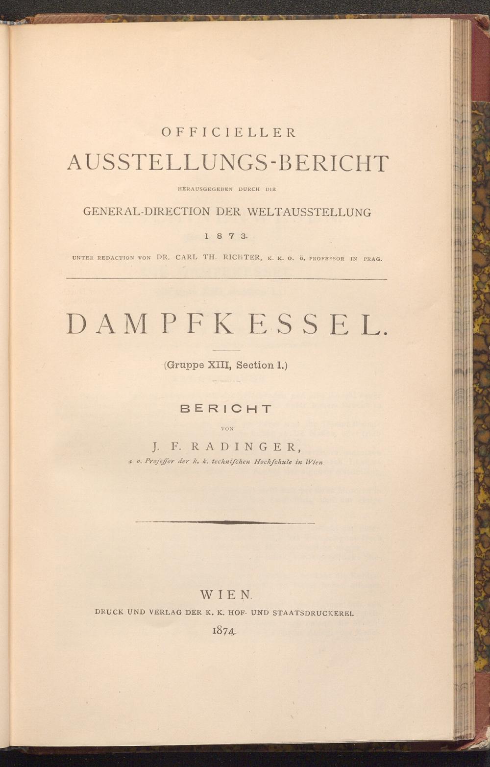 Dampfkessel : (Gruppe XIII, Section 1) ; Bericht / von J. F. Radinger