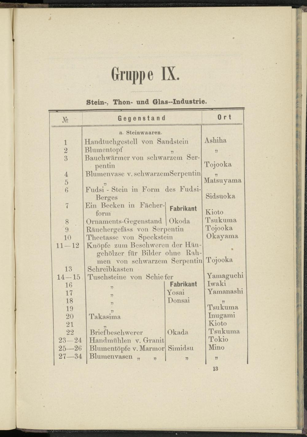 Gruppe IX. Stein-, Thon- und Glas-Industrie.