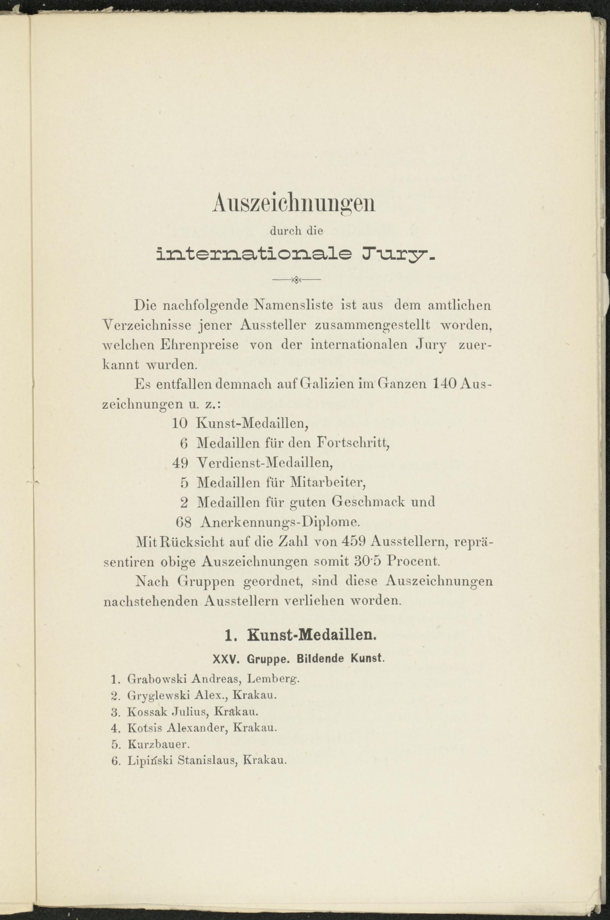 Special-Catalog der Aussteller von Galizien mit dem Großherzogthum Krakau auf der Weltausstellung 1873 in Wien / zusammengestellt im Auftrag des Wiener Local-Comités der galizischen Ausstellungs-Commission von Heinrich Ed. Gintl