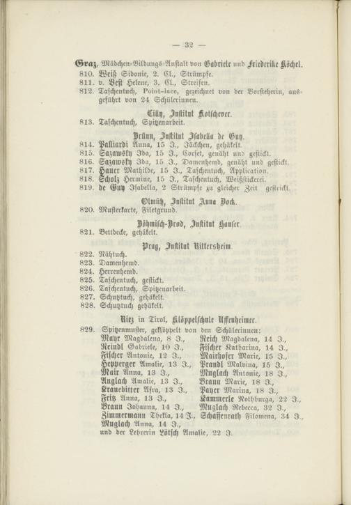 Verzeichniss der an der Ausstellung von Frauen-Arbeiten betheiligten Commissionen
