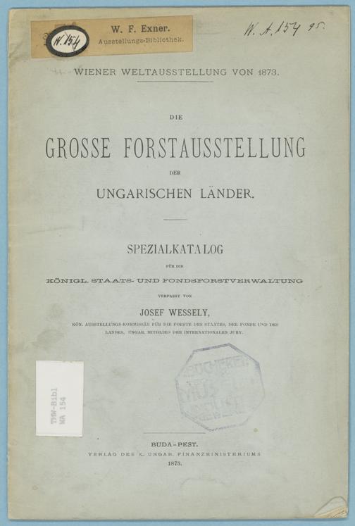 Die große Forstausstellung der ungarischen Länder : Spezialkatalog für die Königl. Staats- und Fondsforstverwaltung ; Wiener Weltausstellung von 1873 / verfasst von Josef Wessely