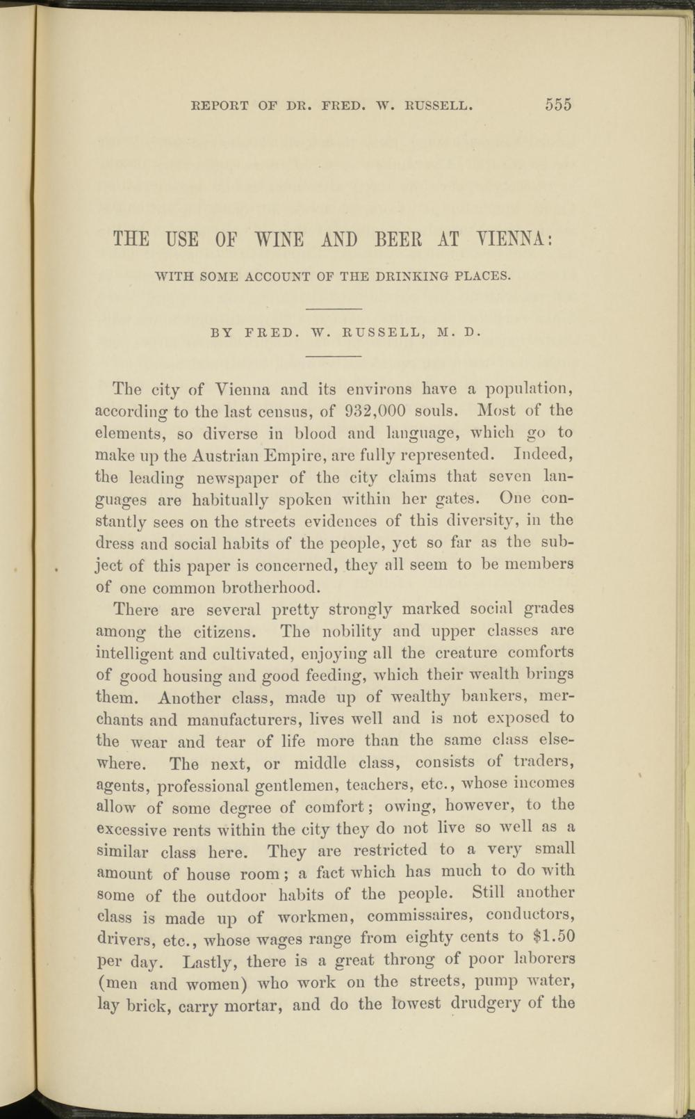 The use of wine and beer at Vienna : with some account of the drinking places / by Fred. W. Russell