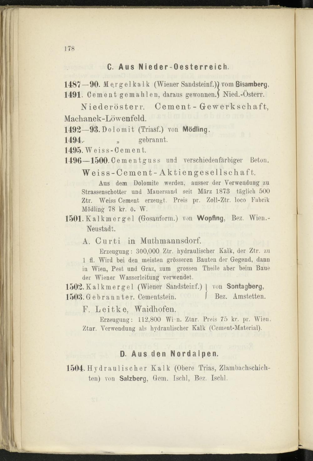 II. Abtheilung. Sammlung der nutzbaren Producte des Mineralreiches aus Oesterreich