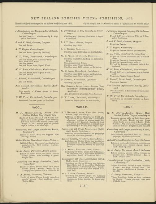 Descriptive catalogue of the exhibits in the New Zealand court of the Vienna exhibition, 1873 = Beschreibender Catalog der Neuseeländischen Abtheilung in der Wiener Ausstellung von 1873 = Catalogue descriptif des objets exposés dans la cour de la Nouvelle-Zélande à L'Exposition de Vienne 1873